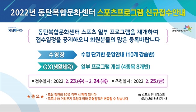 [스포츠] 동탄복합문화센터 스포츠 프로그램 신규 회원모집 안내