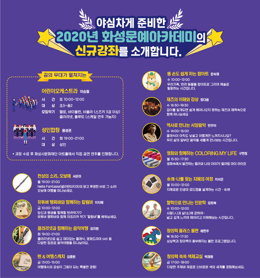 2020년 화성문예아카데미 개설 강좌를 소개합니다!