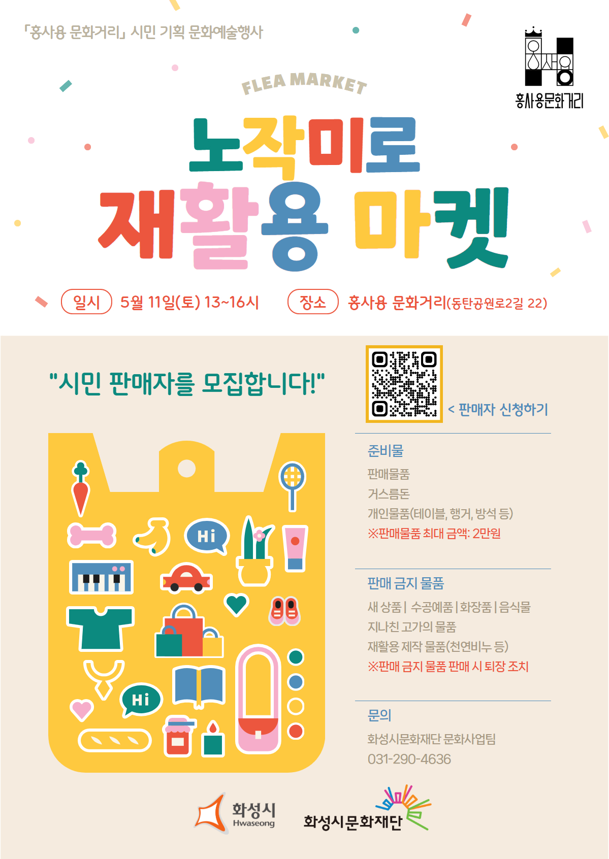 누구나 참여 가능한 벼룩시장(중고마켓)입니다. 시민들이 판매하는 다양한 중고물품을 만나보고, 자원재순환을 실천해보아요!
