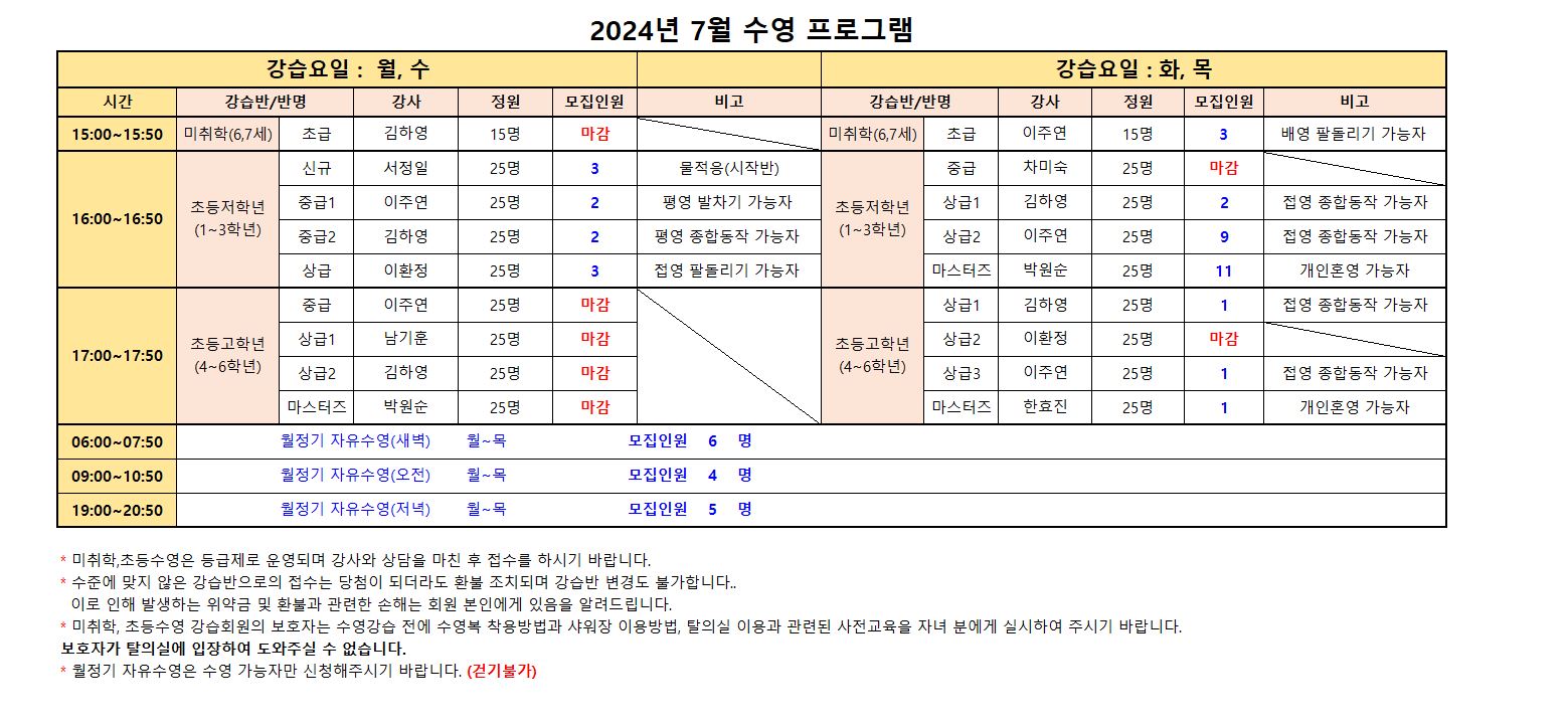 2024년 7월 스포츠 프로그램 추가모집 안내