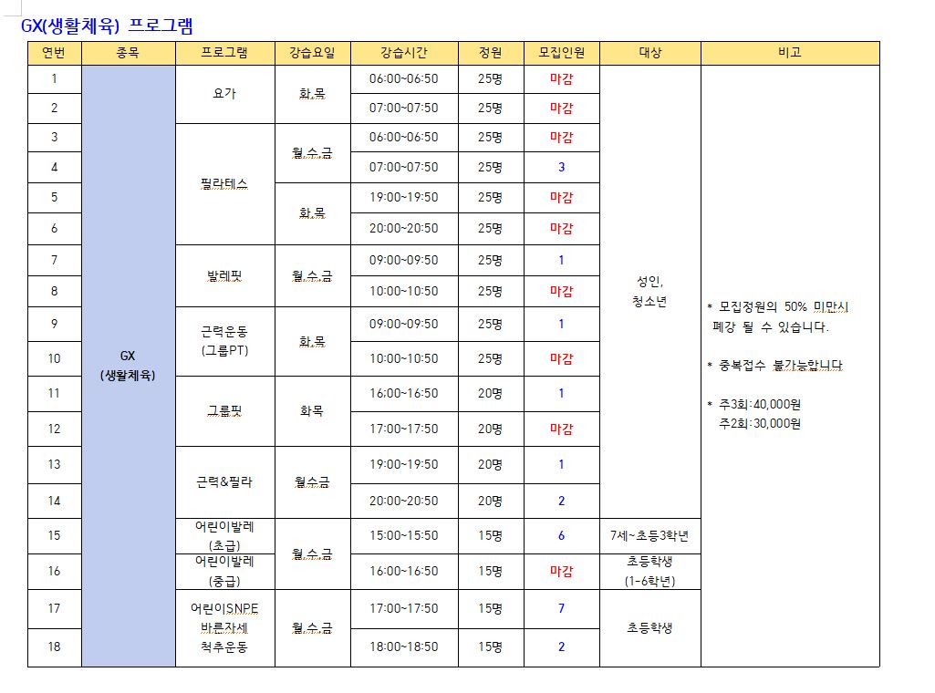[스포츠] 7월 스포츠 프로그램 추가모집 안내
