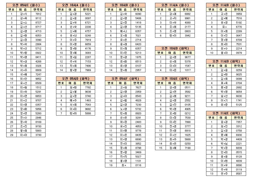 -강습반명, 성명, 전화번호 뒷자리, 강습요일을 확인하시고 강습에 참여해 주시기 바랍니다.