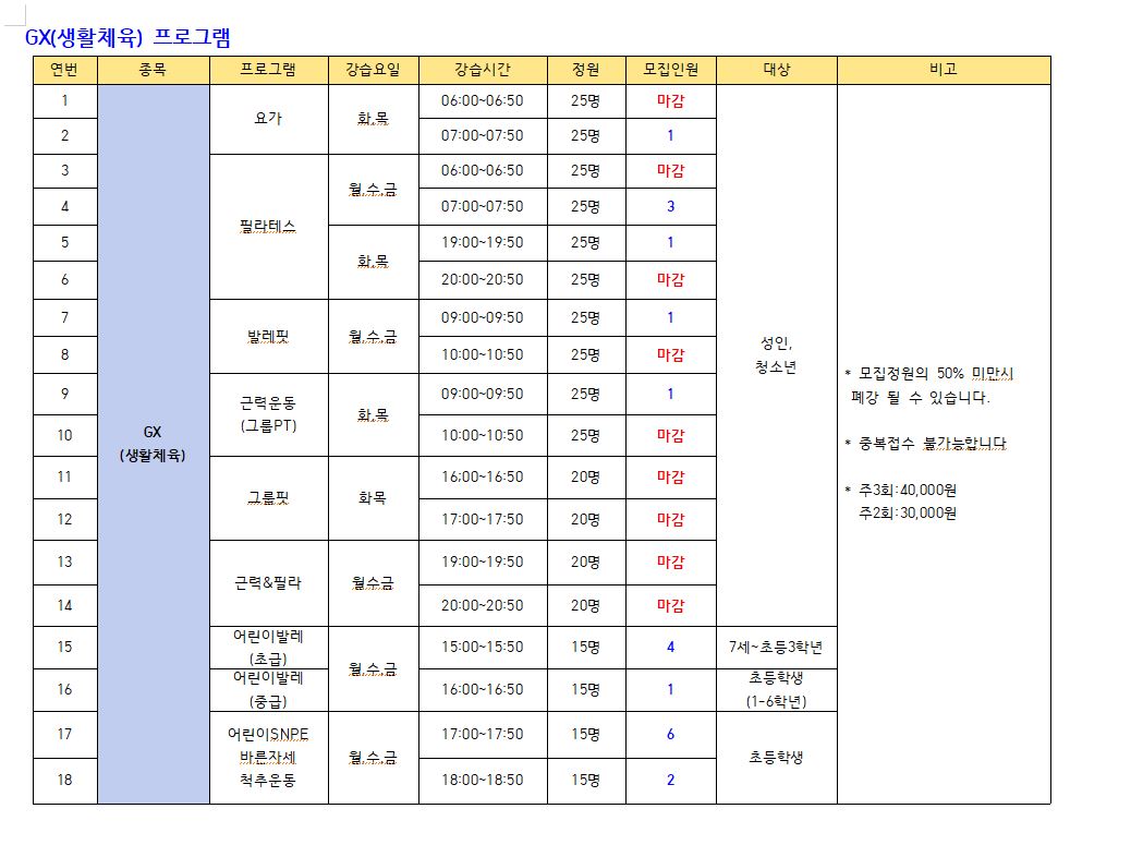 1. 모집정원의 50% 미만시 폐강 될 수 있습니다.