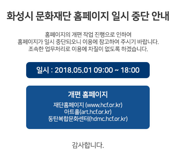 화성시문화재단 홈페이지 일시 중단 안내