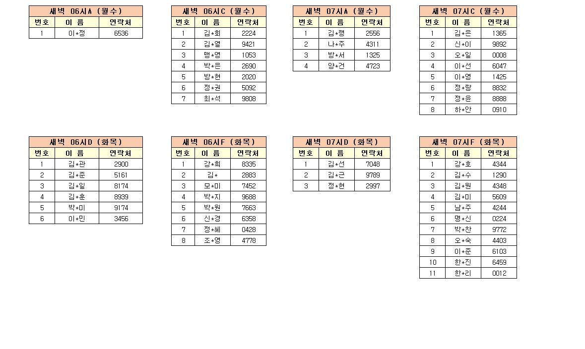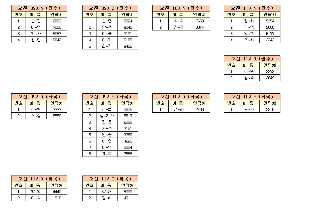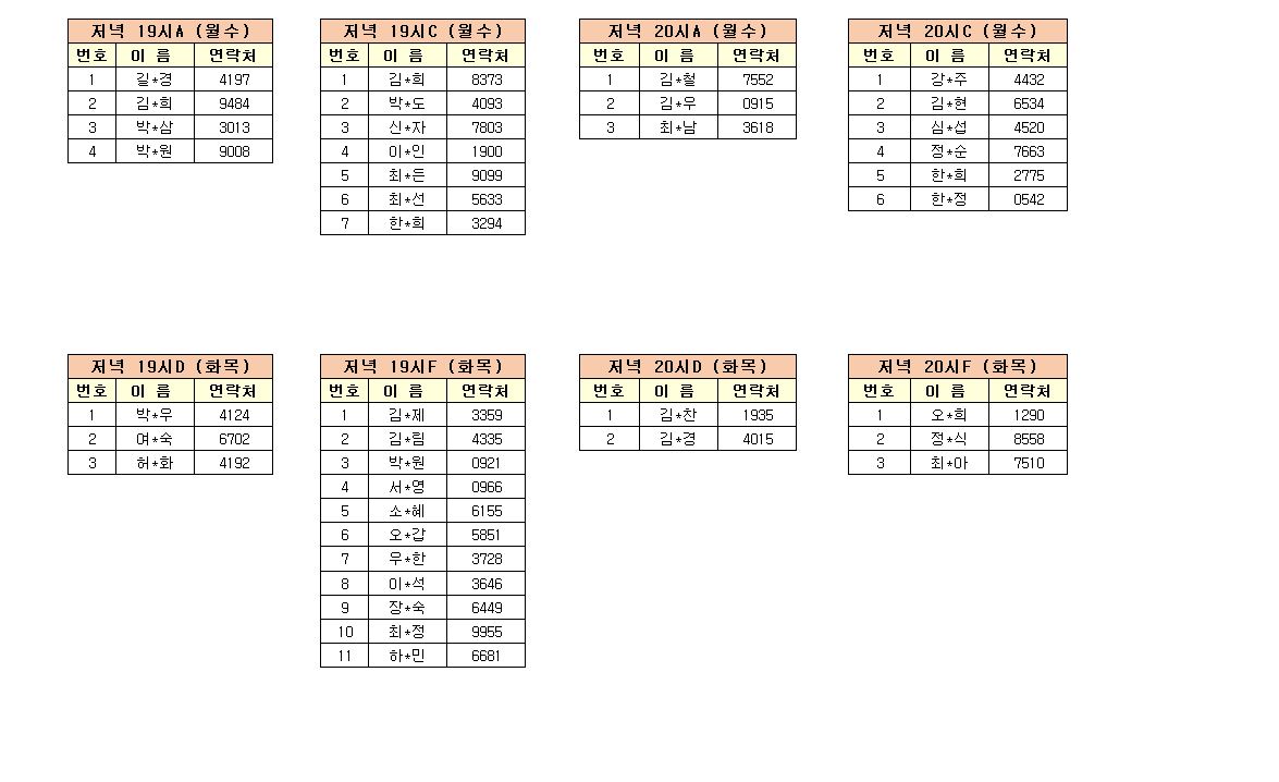 -강습반명, 성명, 전화번호 뒷자리, 강습요일을 확인하시고 강습에 참여해 주시기 바랍니다.