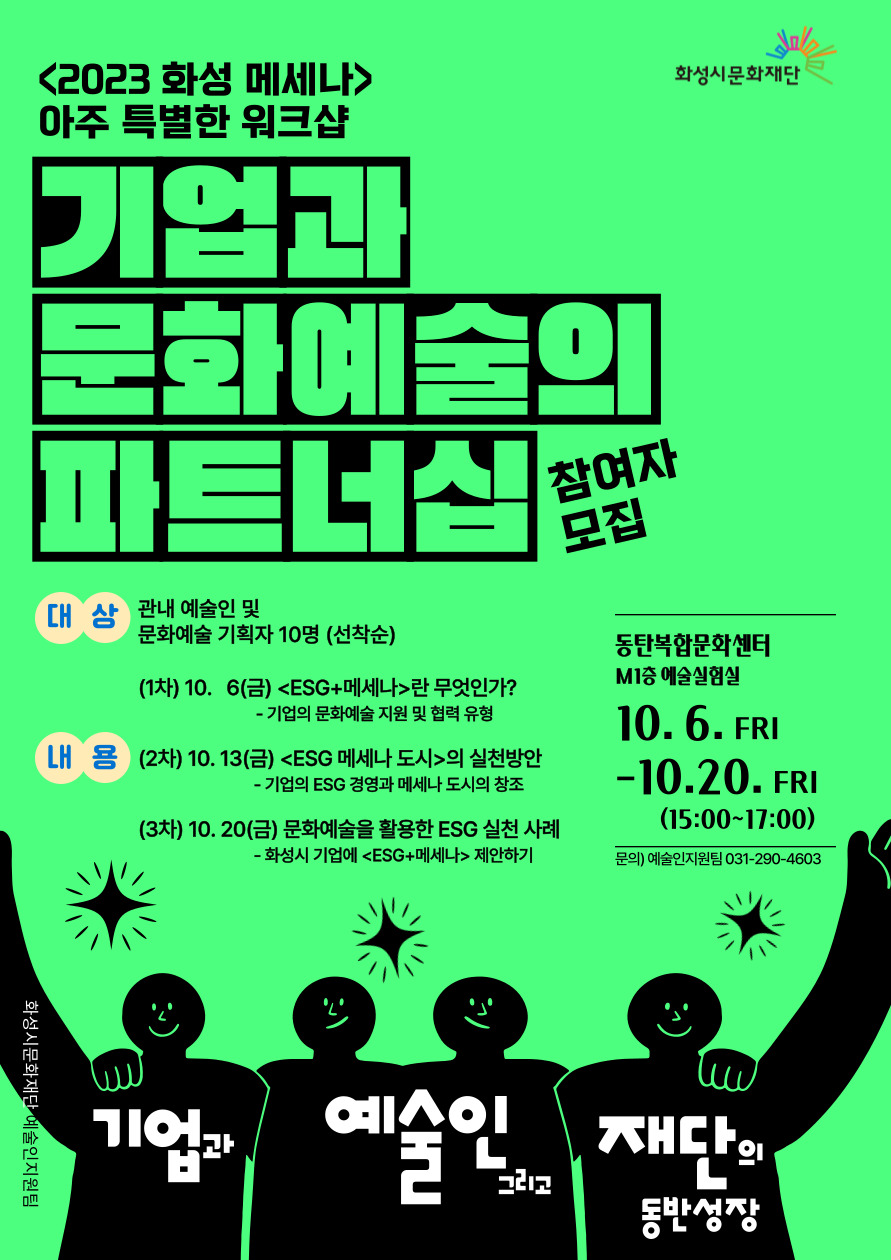 - (3차) 10. 20.(금) 문화예술을 활용한 ESG 실천 사례 - 화성시 기업에 ESG 메세나 제안하기