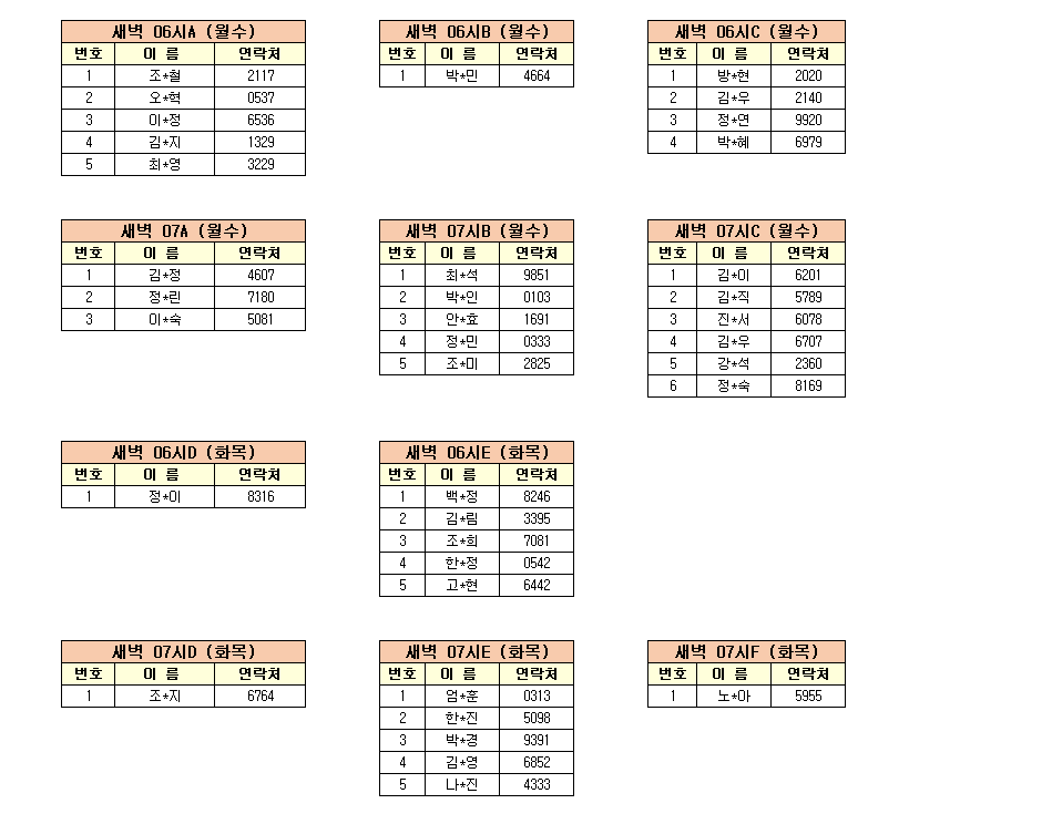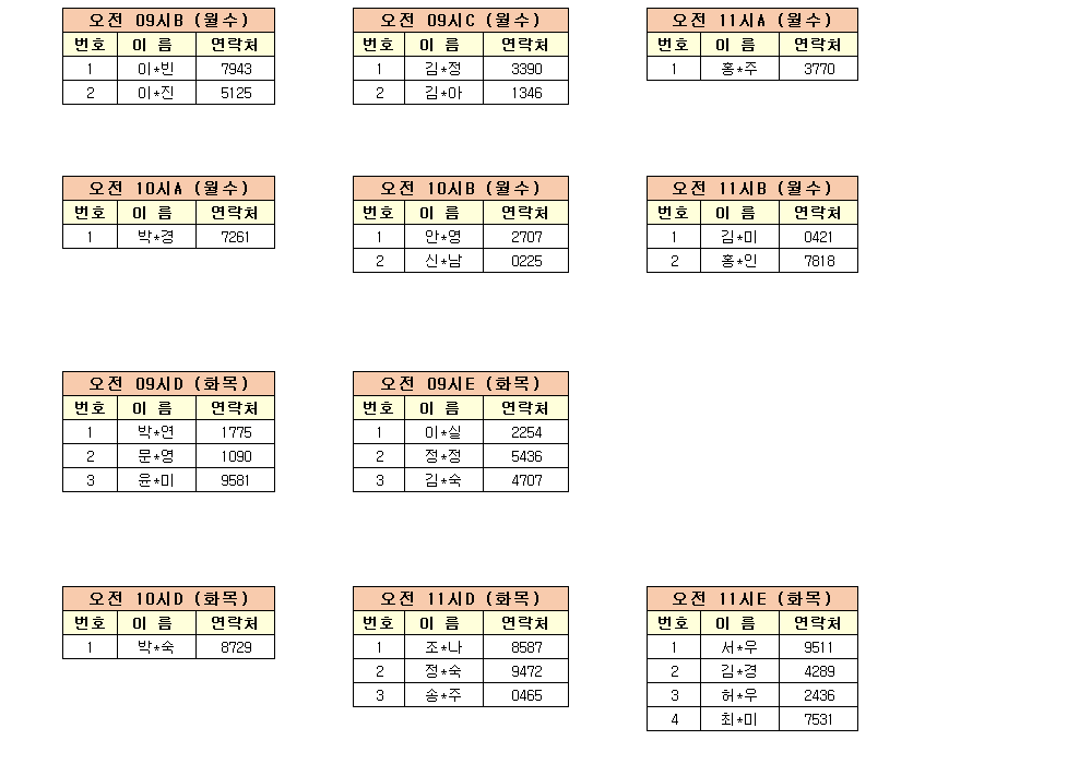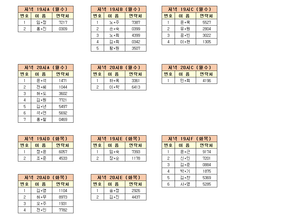 -강습반명, 성명, 전화번호 뒷자리, 강습요일을 확인하시고 강습에 참여해 주시기 바랍니다.