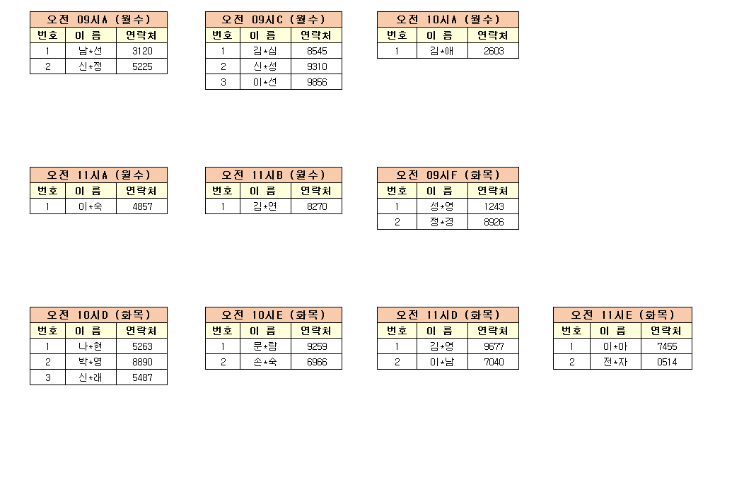 -강습반명, 성명, 전화번호 뒷자리, 강습요일을 확인하시고 강습에 참여해 주시기 바랍니다.