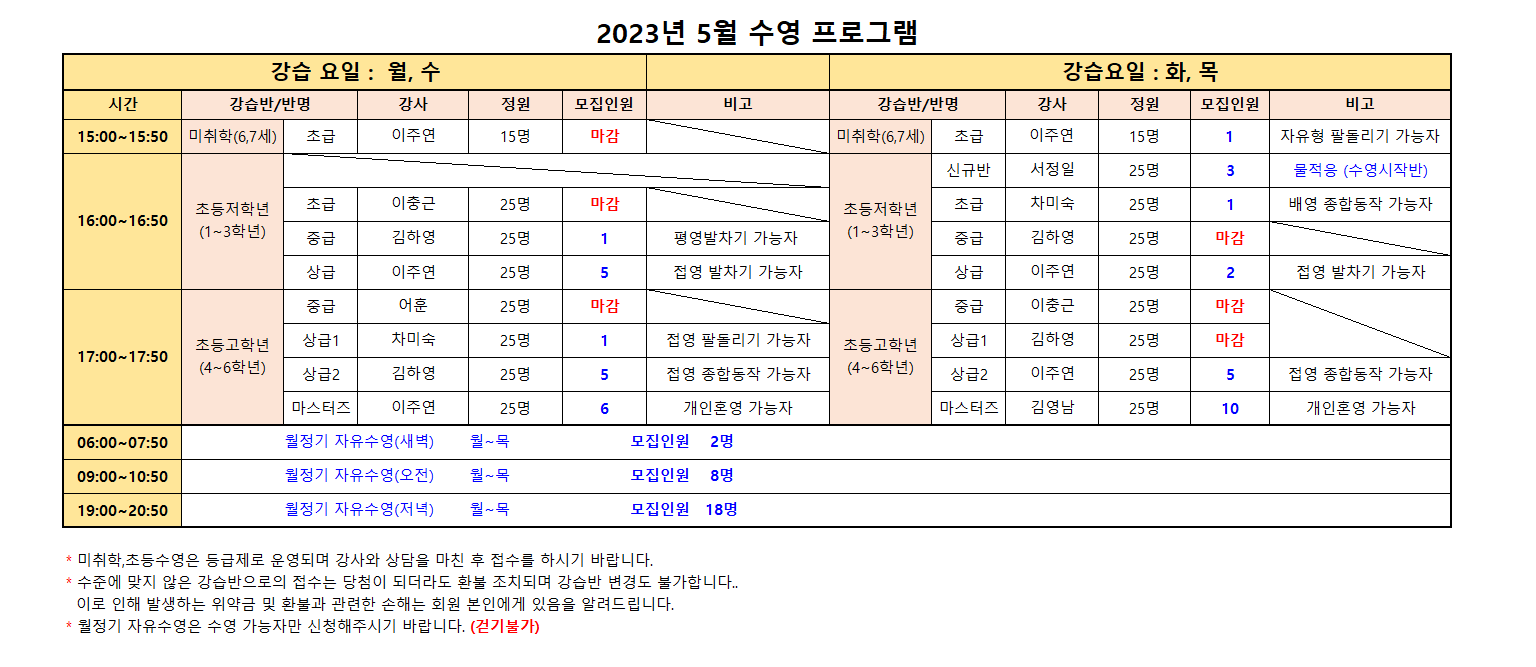 2023년 5월 스포츠 프로그램 추가모집 안내