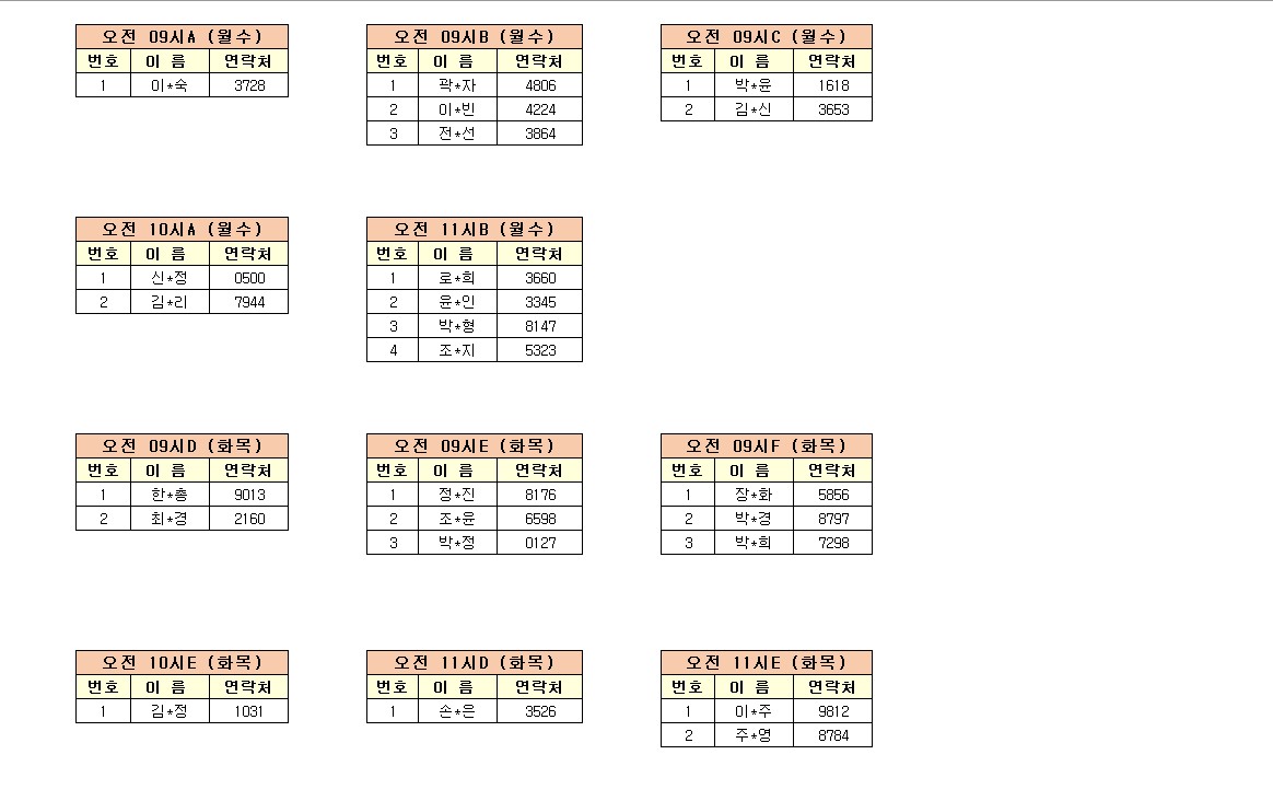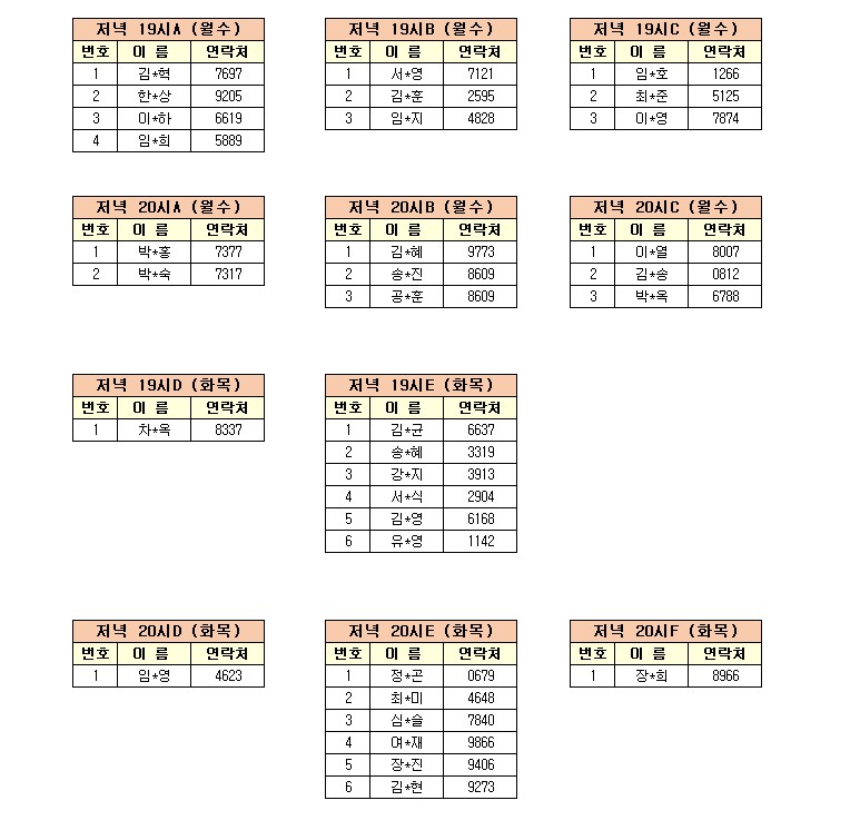 -강습반명, 성명, 전화번호 뒷자리, 강습요일을 확인하시고 강습에 참여해 주시기 바랍니다.