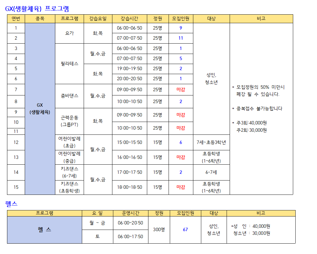 1월 GX(생활체육).헬스 추가모집