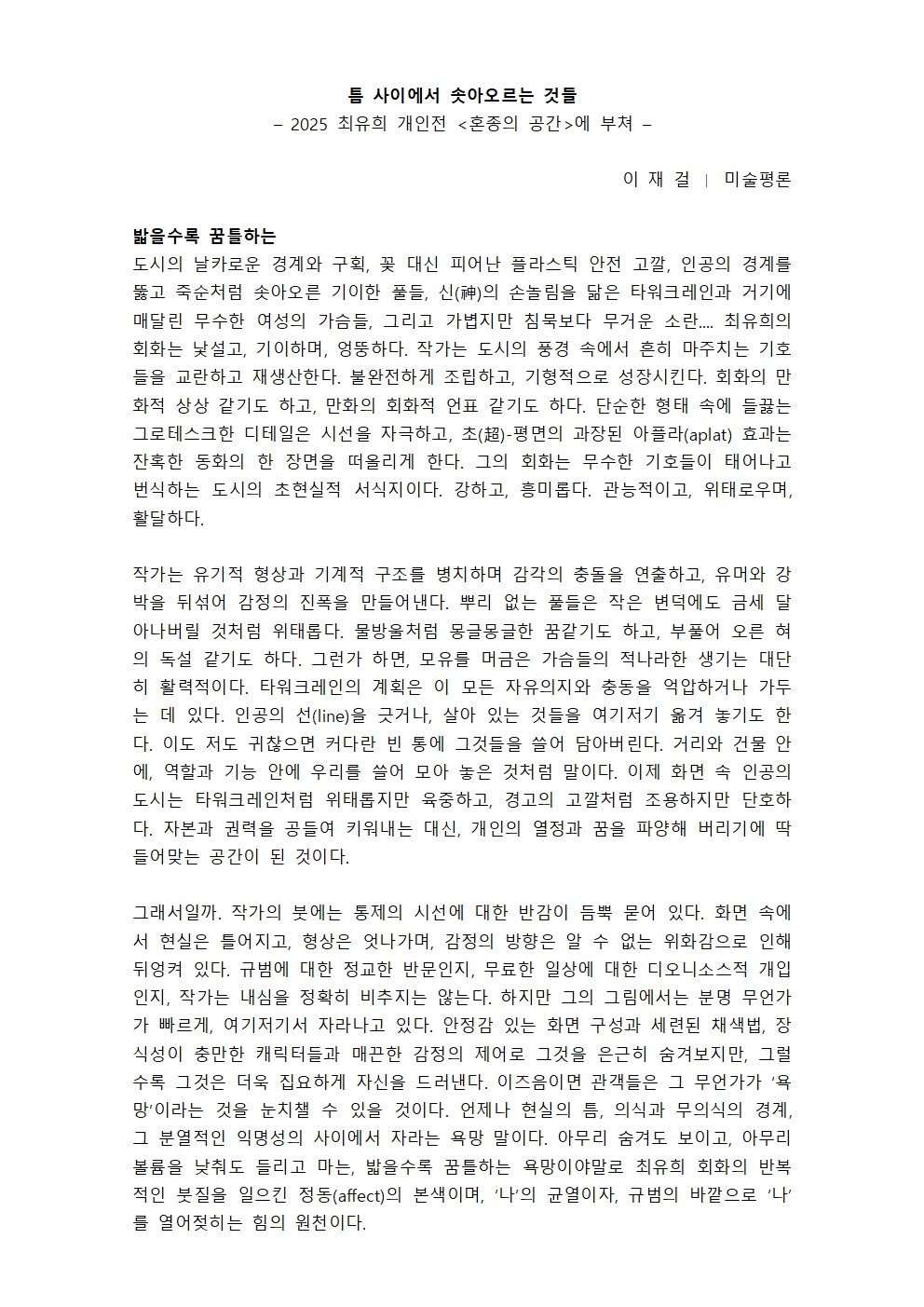 2025 최유희 전시서문 틈 사이에서 솟아오르는 것들_이재걸001 -