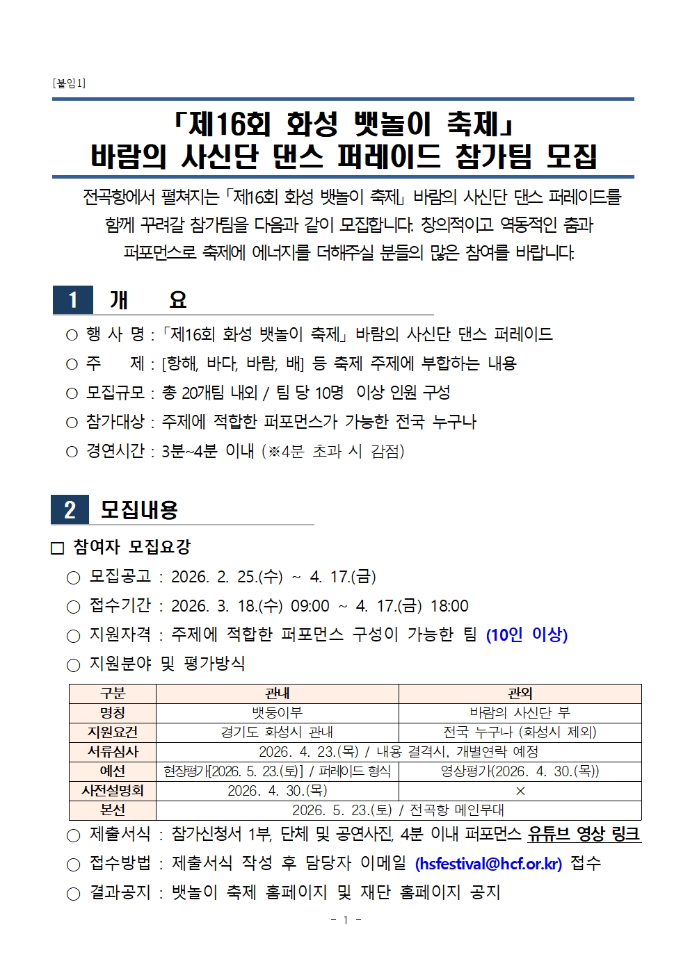 ★ 「제16회 화성 뱃놀이 축제」바람의 사신단 댄스 퍼레이드 참가신청서