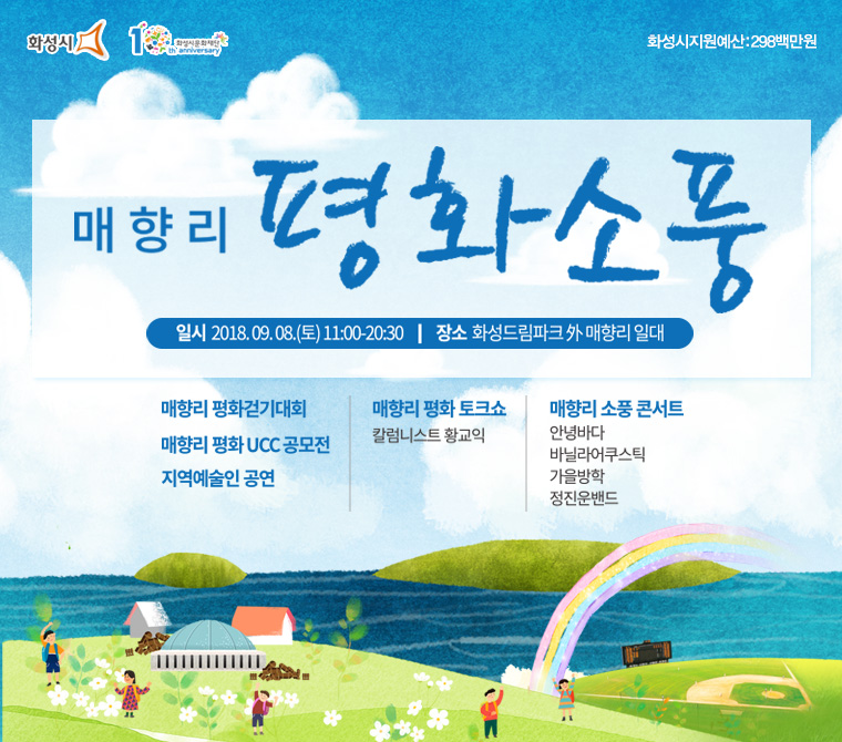 1. 2018 매향리 평화소풍,장소:화성드림파크 외 매향리 일대,기간:2018년 9월 8일~2018년 9월 8일
