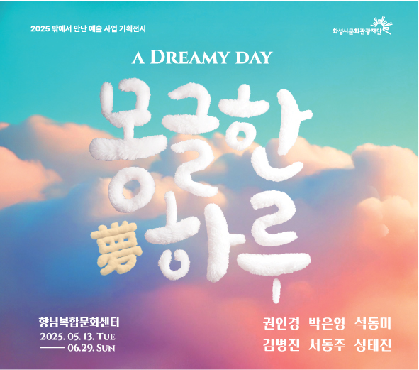 【전 시】2025 밖에서 만난 예술 사업 기획전시 <몽(夢)글한 하루> 장소 향남복합문화센터(경기 화성시 상신하길로 273번길 17) 기간 2025년 5월 13일 ~ 2025년 6월 29일 요일 월, 화, 수, 목, 금, 토, 일 공연시간 10:00~21:00 티켓정보 무료 관람등급 문의 031)290-4603 - 미디어보드(608_347)@4x.png [ Size : 2.23MB, Down : 155 ] 미리보기 다운로드 미디어보드(608_347)@4x 주요문화배너(590x520)-100.jpg [ Size : 238.48KB, Down : 242 ] 미리보기 다운로드 주요문화배너(590x520)-100 목록보기