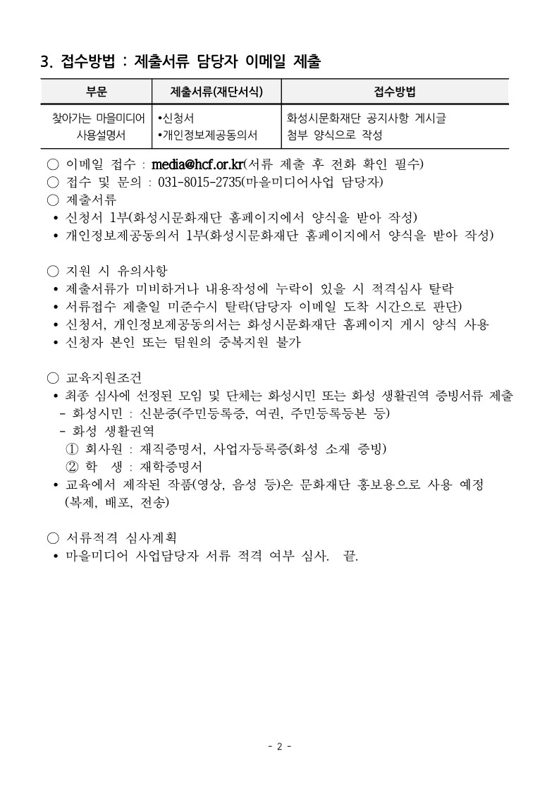 3. 접수방법 : 제출서류 담당자 이메일 제출