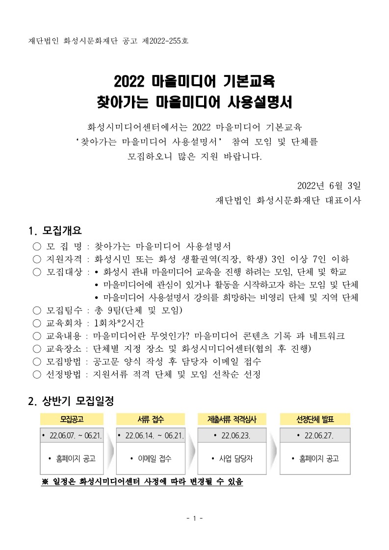 - 22.06.07. ~ 06.21. : 모집공고(홈페이지 공고)