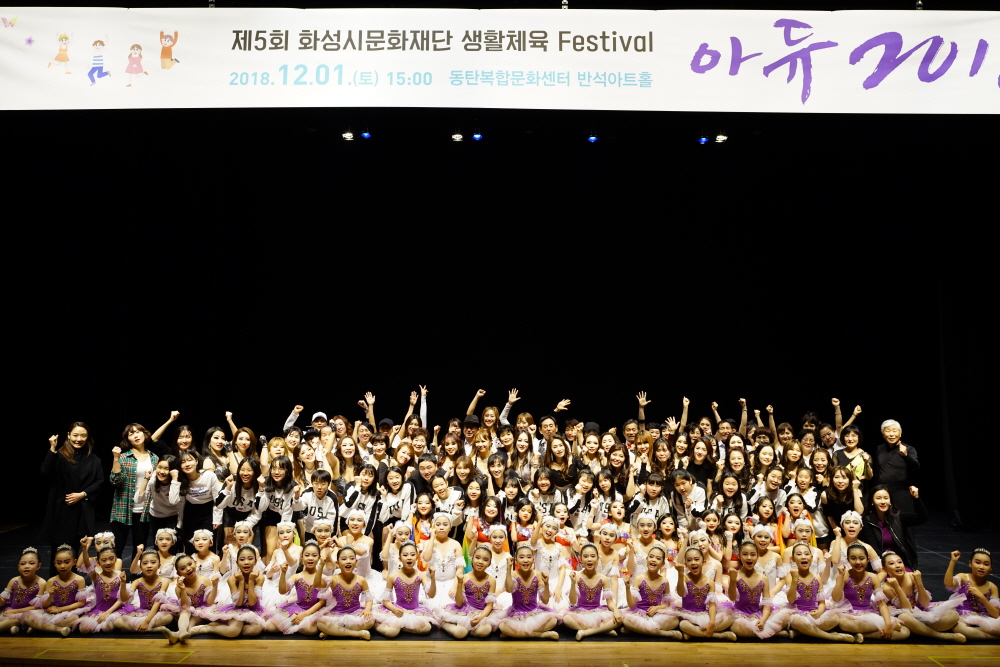 (재)화성시문화재단 동탄복합문화센터 스포츠강좌 수강생들의 작품발표회인「제5회 화성시문화재단 생활체육페스티벌 아듀 2018」이 지난 1일 반석아트홀에서 시민 500여명이 함께한 가운데 성황리에 펼쳐졌다.