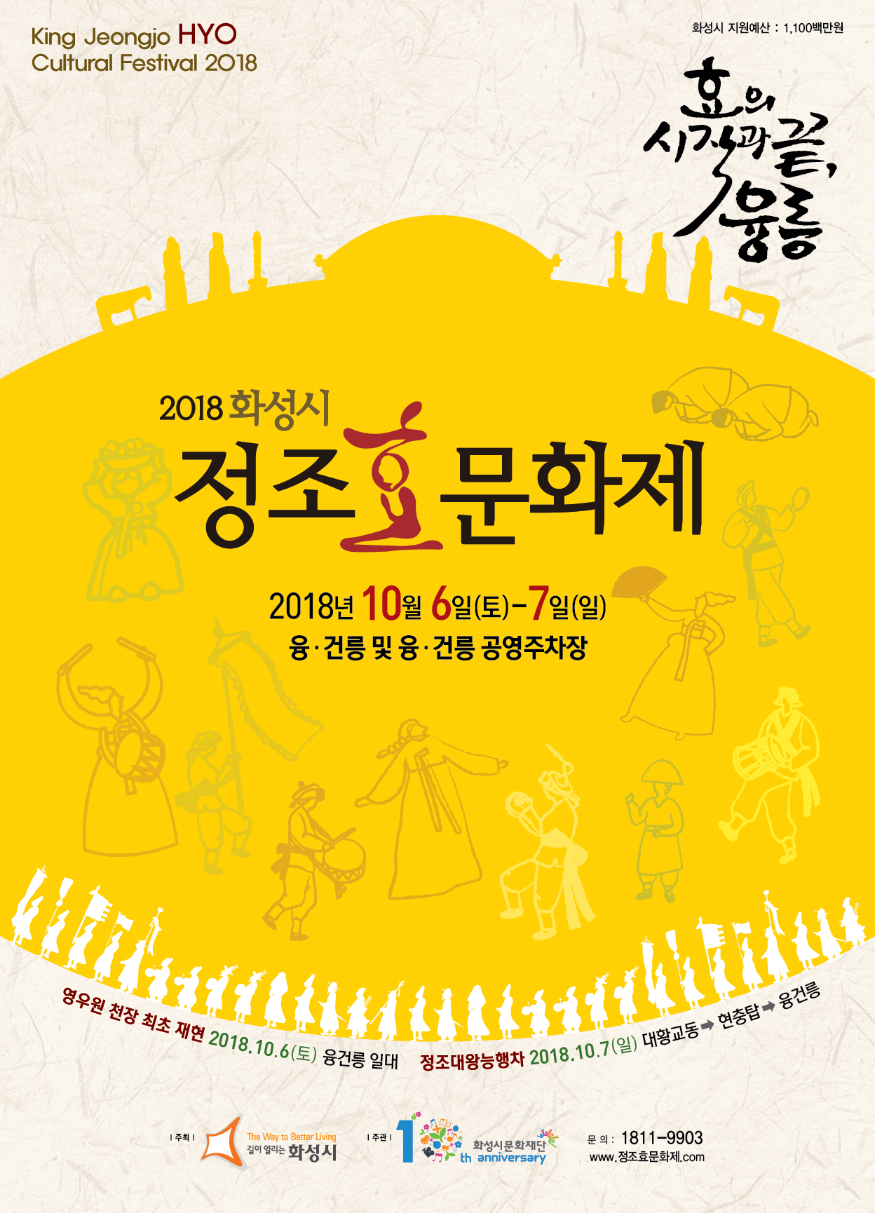 그 외 자세한 문의는 운영사무국 1811-9903 또는 공식 홈페이지 www.정조효문화제.com 를 통해 확인 할 수 있다.
