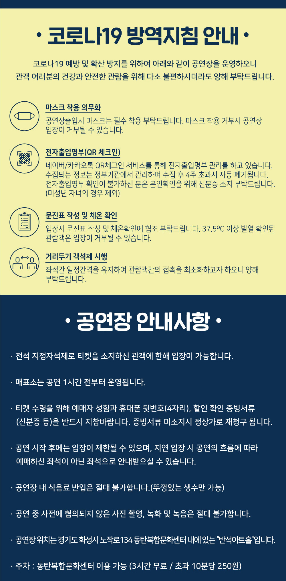 사본 -그랜드콘서트_상세이미지_합친이미지 2.jpg뮤지컬 속 넘버들과 팝페라 음악을 만나볼 수 있는 시간, Popera & Musical, 배우 루이스초이, 배우 소냐, 배우 타니아, 바리톤 정진원, GRAND Concert, 2020년 11월 14일 SAT 17시 동탄복합문화센터 반석아트홀, 티켓가격 3만원, 화성관내 상점 이용영수증 소지 시 30% 할인(그 외 할인율 홈페이지 참조), 주최/주관 화성시, 화성시문화재단, 예매: 화성시문화재단 art.hcf.or.kr(1588-5234), 인터파크 1544-1555, 코로나19로 결핍된 문화생활을 해소할 수 있는 시간, 뮤지컬 <맘마미아>, <엘리자벳>, <오페라의 유령> 등 세계적인 뮤지컬 넘버와 가곡, 팝페라로 화성시민의 마음을 위로하다. 그 어디에서도 볼 수 없었던 풍성하고 화려한 볼거리로 2020년 반석아트홀의 첫 문을 연다. STAFF & CAST