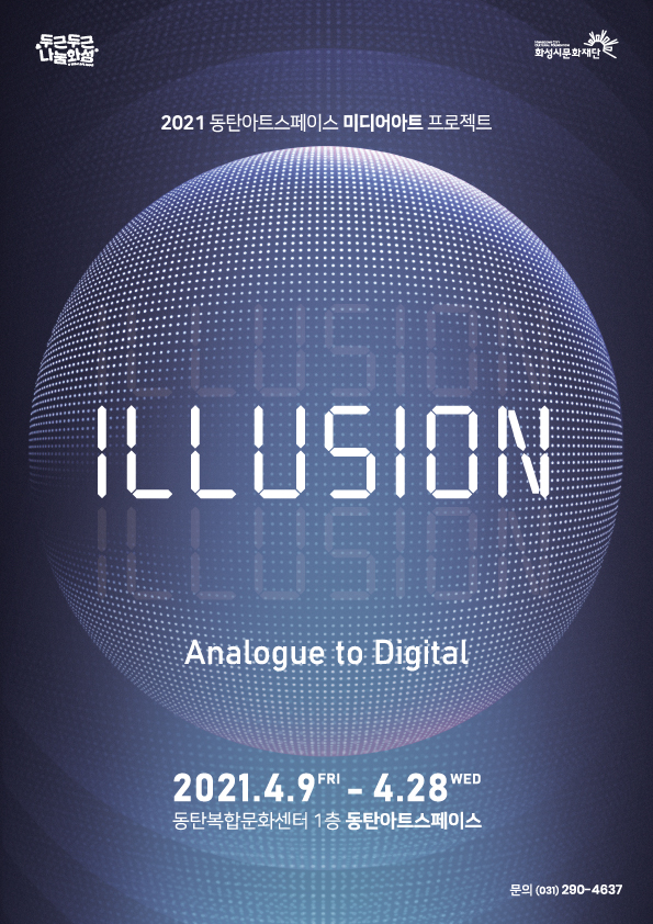 2021동탄아트스페이스미디어아트프로젝트 ILLUSION Analogue to Digital 기간:2021.4.9FRI-4.28WED 장소:동탄복합문화센터1층동탄아트스페이스  문의(031)290-4637 주최:두근두근나눔화성 화성시문화재단
