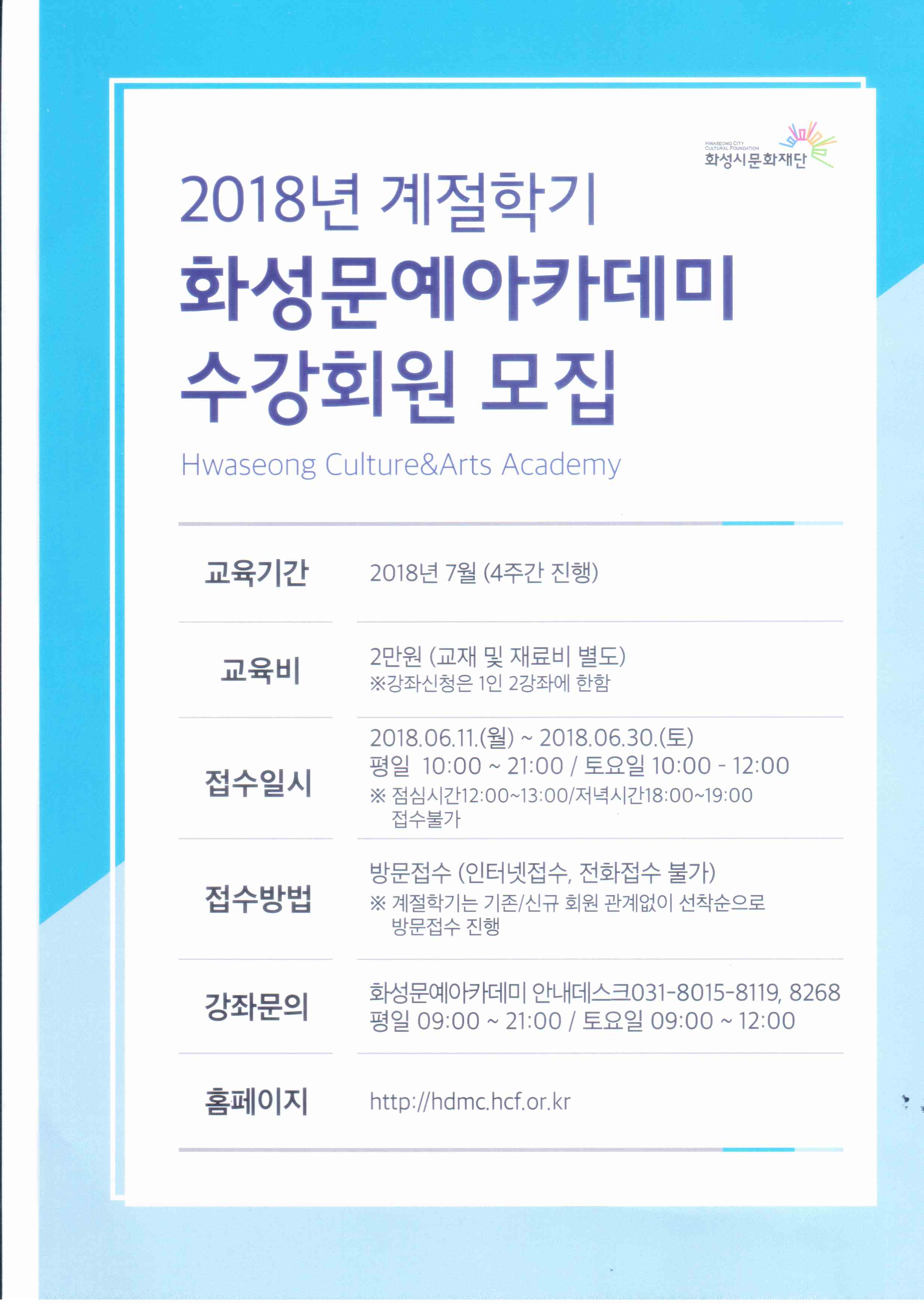 동탄복합문화센터 계절학기 리플릿도 화성문예아카데미 홈페이지에 올려주세요