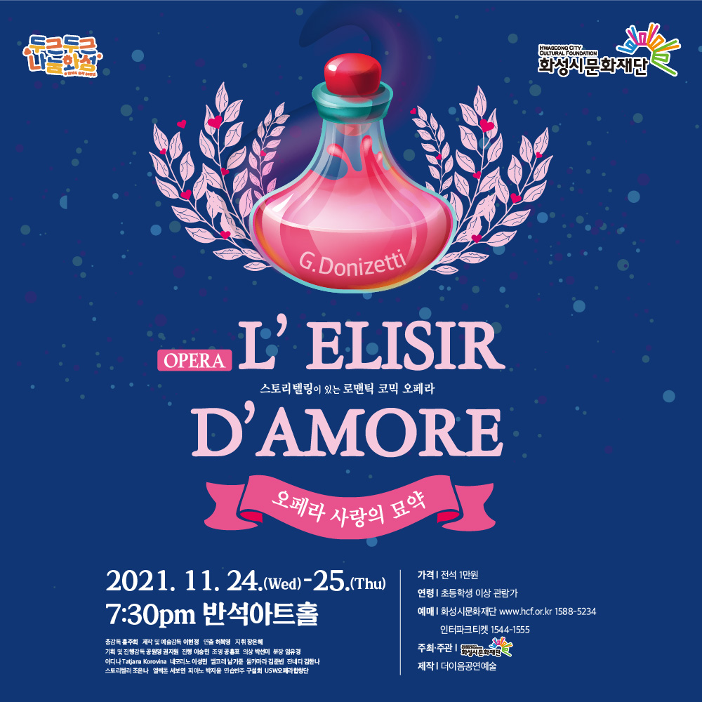 1. 스토리텔링이 있는 로맨틱 코믹 오페라 <사랑의 묘약>,장소:동탄복합문화센터 반석아트홀,기간:2021년 11월 24일~2021년 11월 25일
