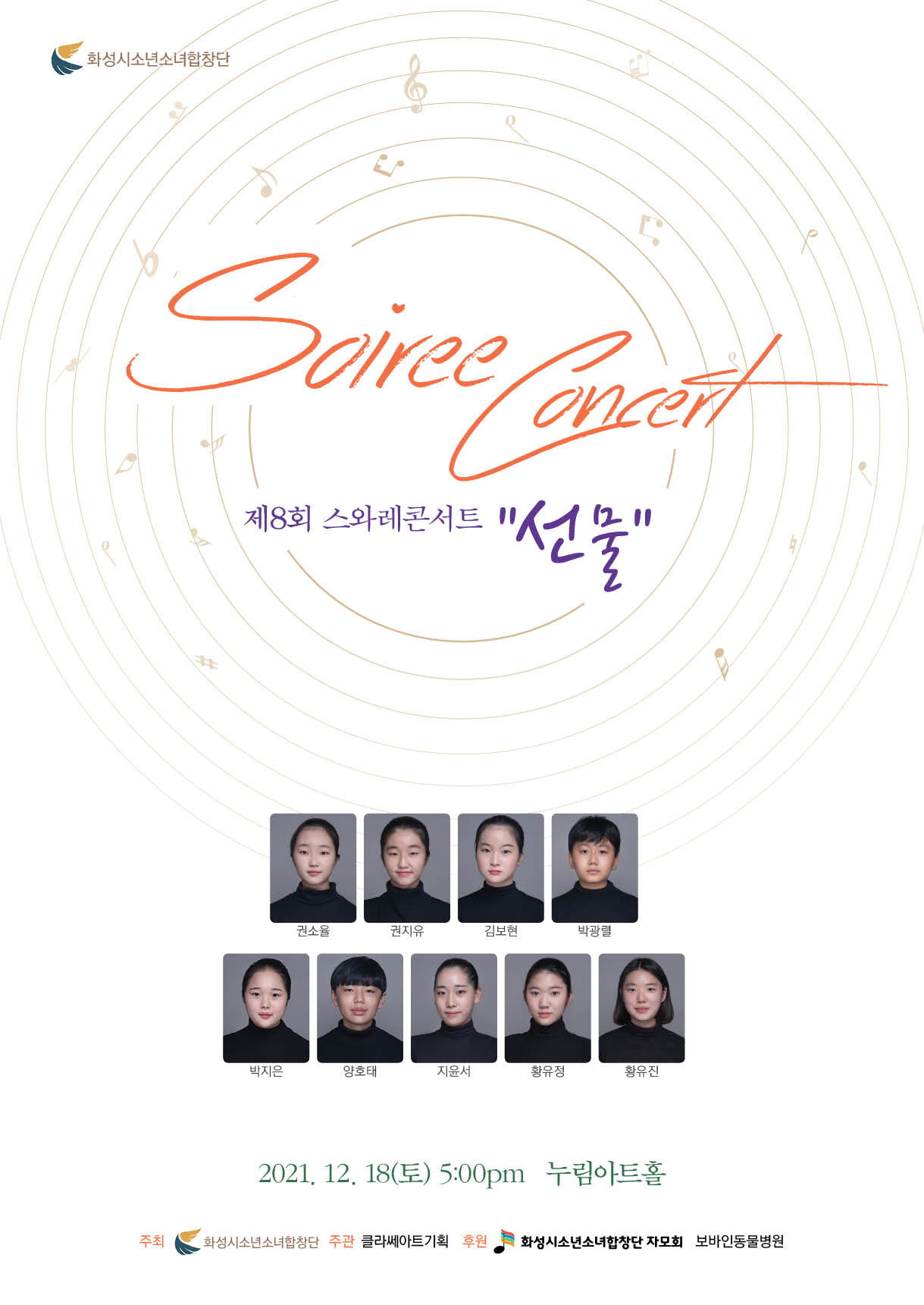 주최 화성시소년소녀합창단 주관 클라쎄아트 기획 후원 화성시소년소녀합창단 자모회 보바인 동물병원