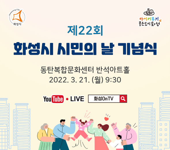 1. 2022년 제22회 화성시 시민의 날 기념식,장소:동탄복합문화센터 반석아트홀,기간:2022년 3월 21일~2022년 3월 21일