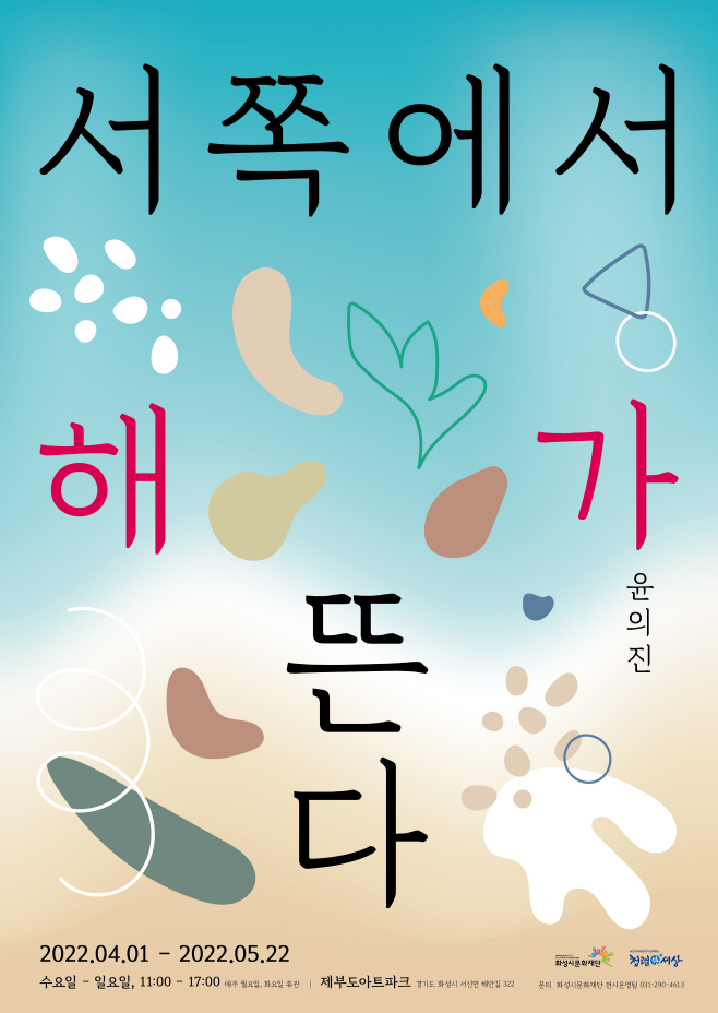 서쪽에서 해가 뜬다 윤의진 2022.04.01-2022.05.22 수요일-일요일, 11:00-17:00 매주 월요일, 화요일 휴관 제부도아트파크 경기도 화성시 서신면 해안길 322 문의 화성시문화재단 전시운영팀 031)290-4613 화성시문화재단 청렴한세상