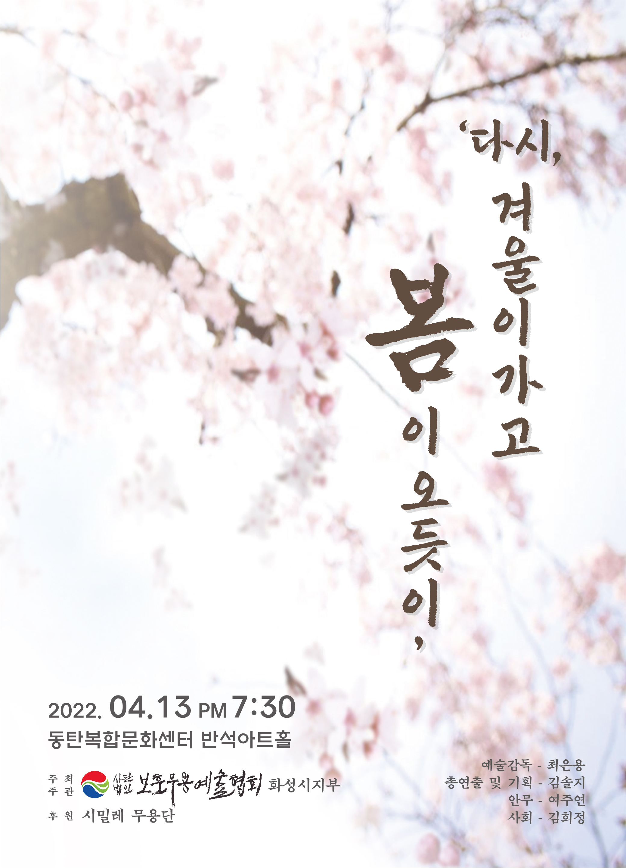 1.  다시, 겨울이 가고 봄이 오듯이,장소:동탄복합문화센터 반석아트홀,기간:2022년 4월 13일~2022년 4월 13일