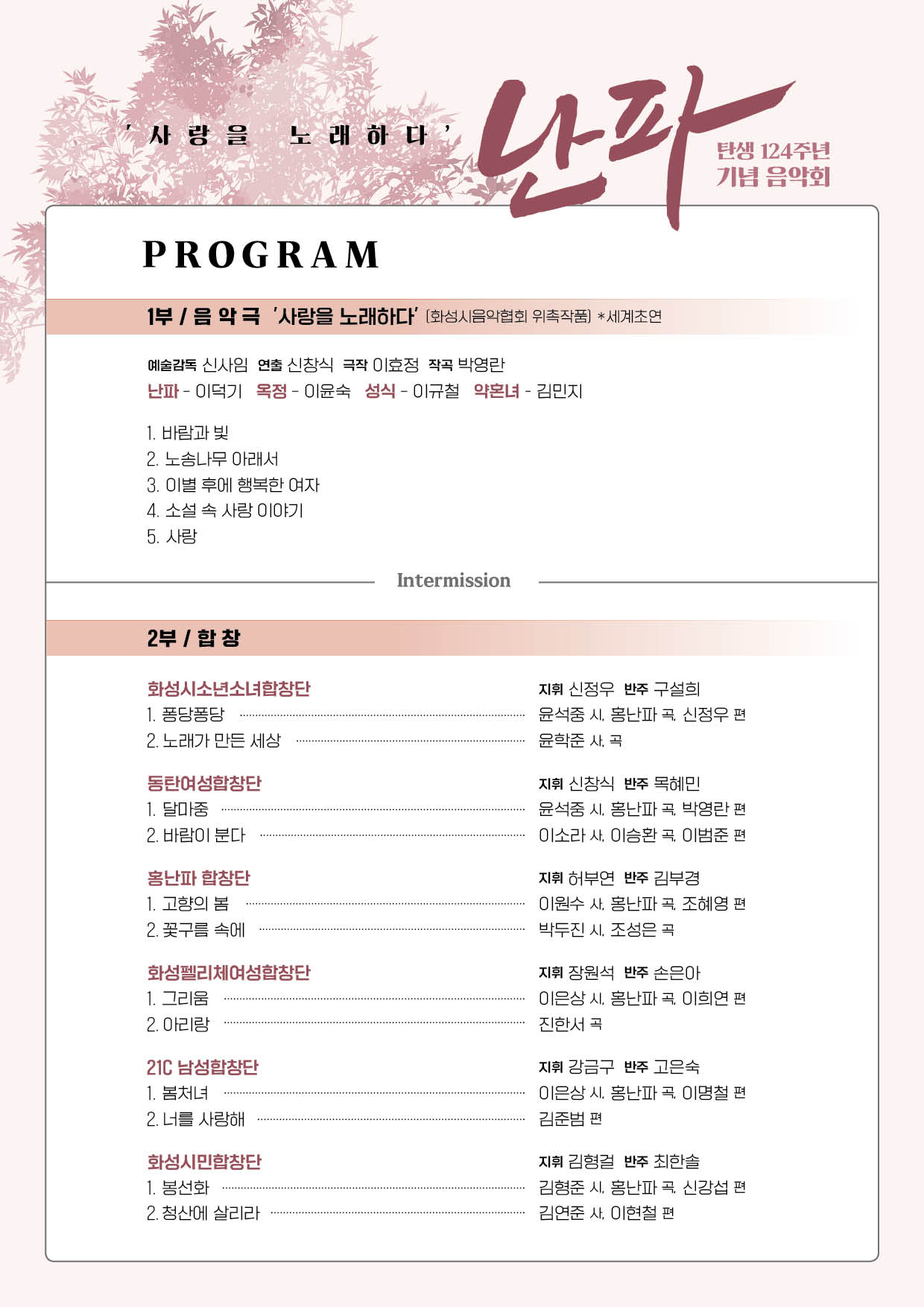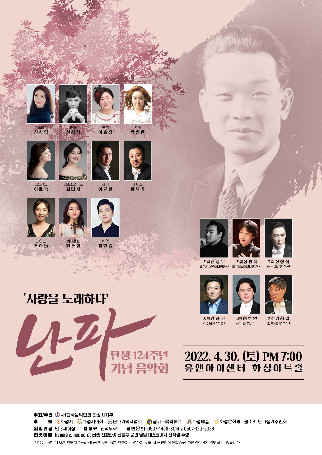 1. 난파탄생 124주년 기념음악회,장소:,기간:2022년 4월 30일~2022년 4월 30일