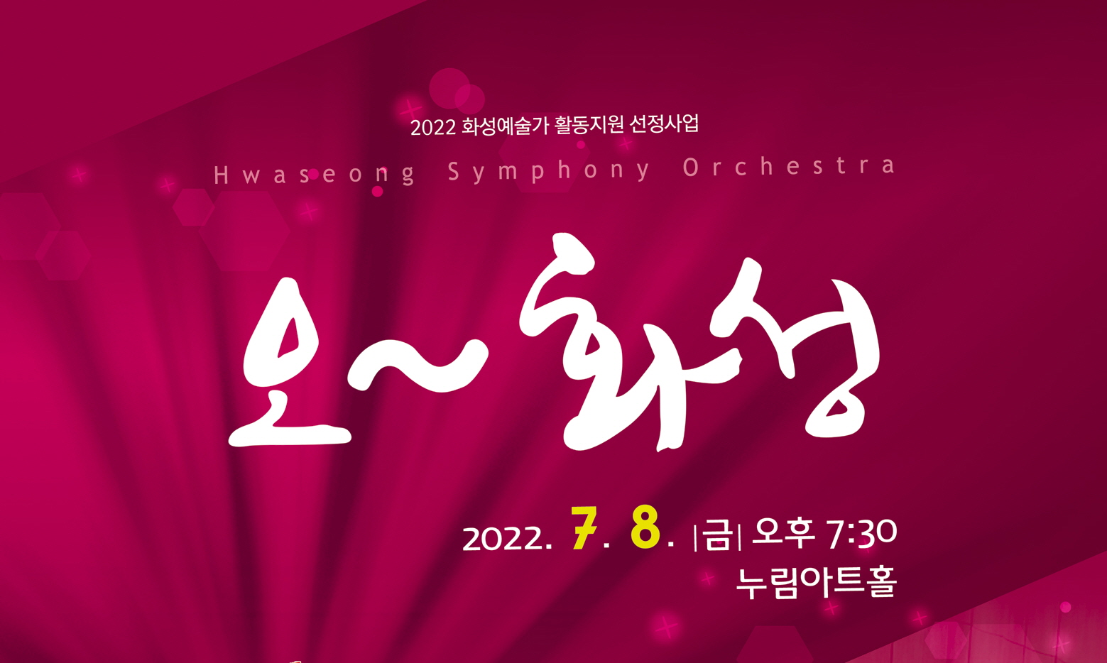 사)화성심포니오케스트라는 화성시에서 활동하고 있는 전문연주자들로 구성된 단체, 다양한 기획공연을 통해지역주민들에게 문화예술의 향유기회를 제공하고, 음악교육을 통해 사회 서비스를 제공함으로써 문화예술발전과 복지향상을 위해 노력하는 오케스트라/화성시청소년교향악단과 함께하며 7장의 음반을 제작하였고, 경기도, 화성시의 찾아가는 문화활동으로 소외지역과 학교에서 연주를 개최하였습니다.