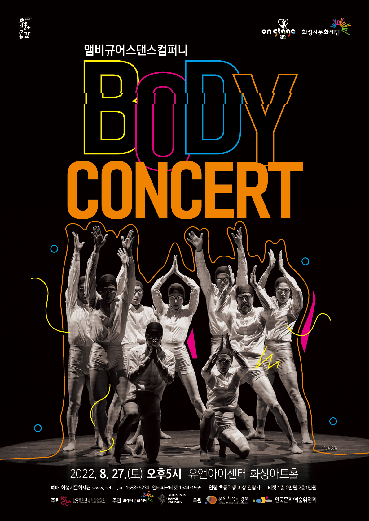 【[공 연]기획공연】[방방곡곡X댄스 on stage2] 앰비규어스댄스컴퍼니 <바디콘서트> 장소 화성아트홀 기간 2022년 8월 27일 ~ 2022년 8월 27일 요일 토 공연시간 17:00 (60분) 티켓정보 1층 2만원/2층 1만원 관람등급 초등학생 이상 문의 1588-5234 예매가능시간: 전일17시(월~토 관람 시)까지/전일 11시(일요일 관람 시)까지▶댓글 이벤트 참여가기: http://pf.kakao.com/_Mqxixhxl/95742387 아트홀_목록이미지.png [ Size : 4.25KB, Down : 116 ] 미리보기 다운로드 아트홀_목록이미지 포스터.jpg [ Size : 846.07KB, Down : 126 ] 미리보기 다운로드 포스터 상세페이지.jpg [ Size : 3.2MB, Down : 5,705 ] 미리보기 다운로드 상세페이지 카카오 이벤트(최종).jpg [ Size : 195.92KB, Down : 5,614 ] 미리보기 다운로드 카카오 이벤트(최종) 목록보기