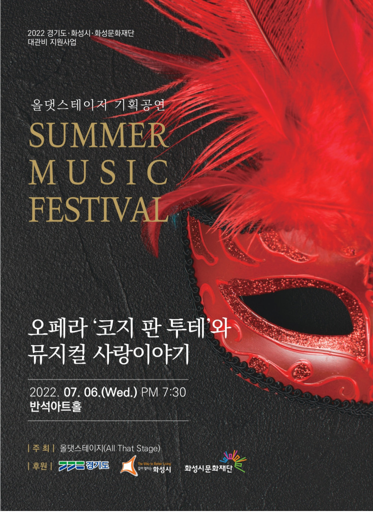 올댓스테이지 기획공연 SUMMER MUSIC FESTVAL  오페라 코지판투테 와 뮤지컬 사랑이야기 2022.07.06(WED.) PM 7:30 반석아트홀 주최:옥탯스테이지(All That Stage) 후원:경기도,화성시,화성시문화재단
