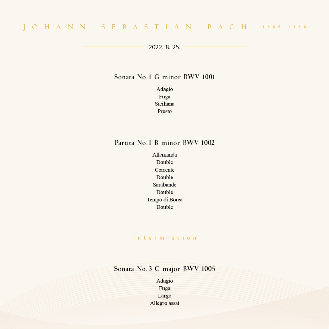 1. [화성예술가활동지원] 바이올리니스트 김소정 바흐 무반주 전곡 바이올린 리사이틀1,장소:동탄복합문화센터 반석아트홀,기간:2022년 8월 25일~2022년 8월 25일