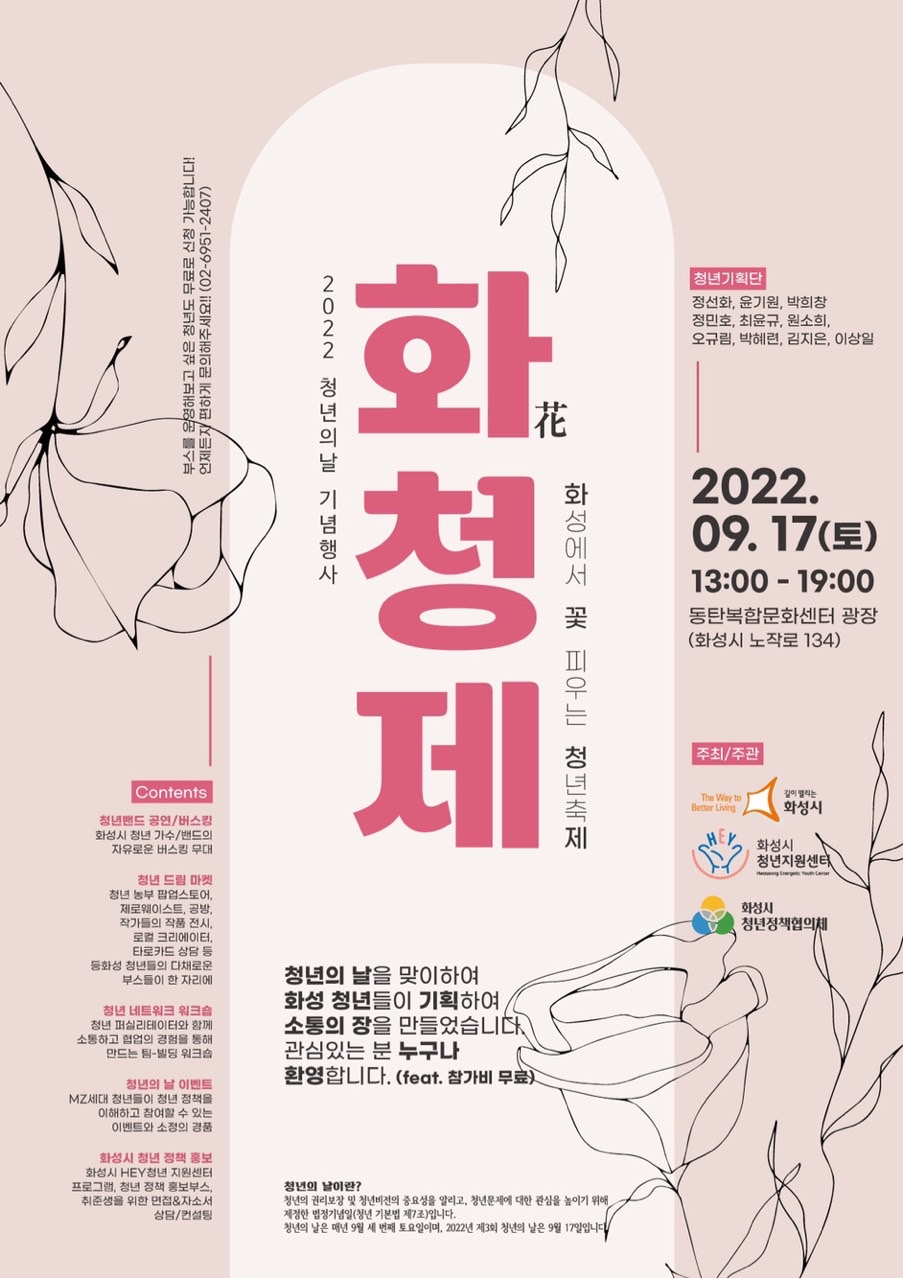 1. 2022년 화성시 청년의 날 기념식,장소:,기간:2022년 9월 17일~2022년 9월 17일