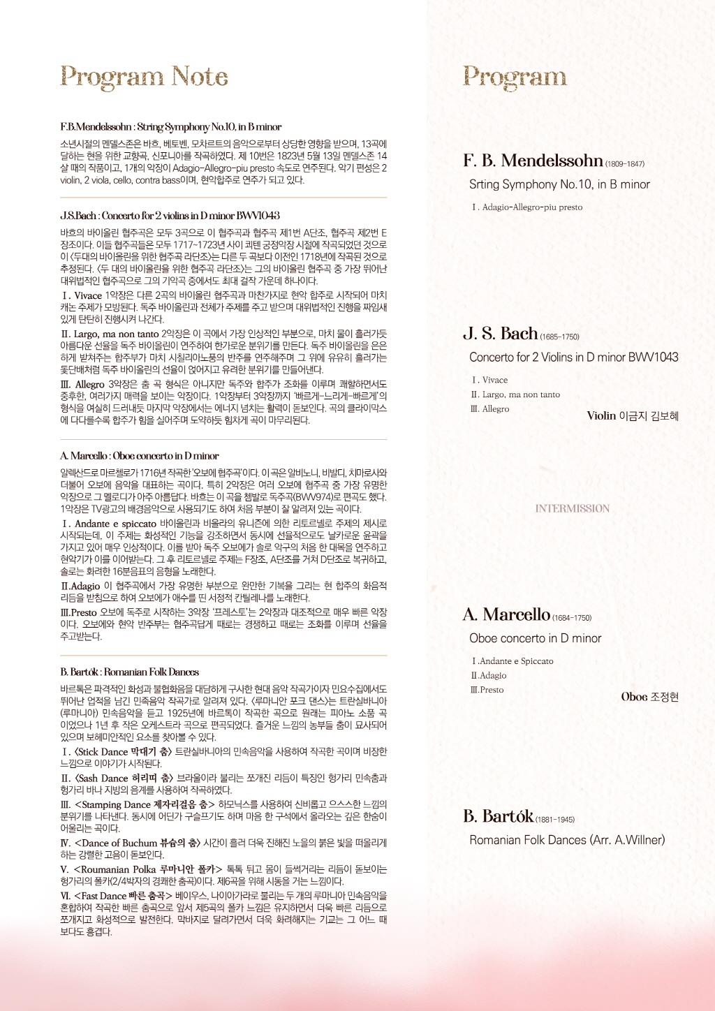 【[공 연]대관공연】[화성예술가활동지원] Tutti Inside Solo 장소 동탄복합문화센터 반석아트홀 기간 2022년 10월 15일 ~ 2022년 10월 15일 요일 토 공연시간 2022년 10월 15일(토) 17:00 티켓정보 무료 관람등급 5세이상 문의 010-8819-****(삼일사칠) 위 공연은 화성예술가활동지원 사업으로 진행되는 공연입니다. (전석무료) 화성시챔버 포스터 180x120.jpg [ Size : 29.94KB, Down : 103 ] 미리보기 다운로드 화성시챔버 포스터 180x120 [크기변환]화성시챔버 포스터 a4.jpg [ Size : 580.1KB, Down : 393 ] 미리보기 다운로드 [크기변환]화성시챔버 포스터 a4 [크기변환]화성시챔버오케스트라 프로그램.jpg [ Size : 776.99KB, Down : 104 ] 미리보기 다운로드 [크기변환]화성시챔버오케스트라 프로그램 목록보기