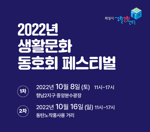 1차: 2022.10.8(토) 11:00-17:00 향남2지구 중앙분수광장(화성시 향남읍 발안양감로 211)