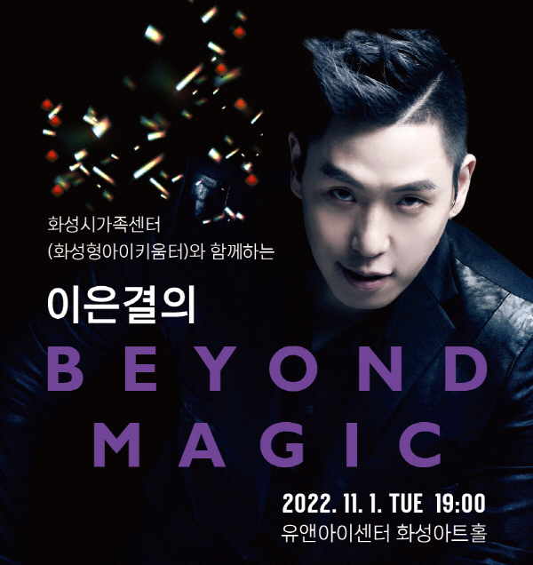 【[공 연]대관공연】이은결의 Beyond Magic 장소 유앤아이센터 화성아트홀 기간 2022년 11월 29일 ~ 2022년 11월 29일 요일 화 공연시간 2022년 11월 29일(화) 19:00 (소요시간 90분) 티켓정보 무료(사전 예약 필수) 관람등급 5세 이상 문의 031-267-8815 화성시가족센터https://hsfc.familynet.or.kr/center/ 아래 이은결씨 공연은 11월 1일(화)에서 29일(화)로 변경되었습니다. 목록이미지_이은결.jpg [ Size : 254.78KB, Down : 89 ] 미리보기 다운로드 목록이미지_이은결 이은결의-beyond-magic(웹).jpg [ Size : 364.07KB, Down : 926 ] 미리보기 다운로드 이은결의-beyond-magic(웹) 목록보기