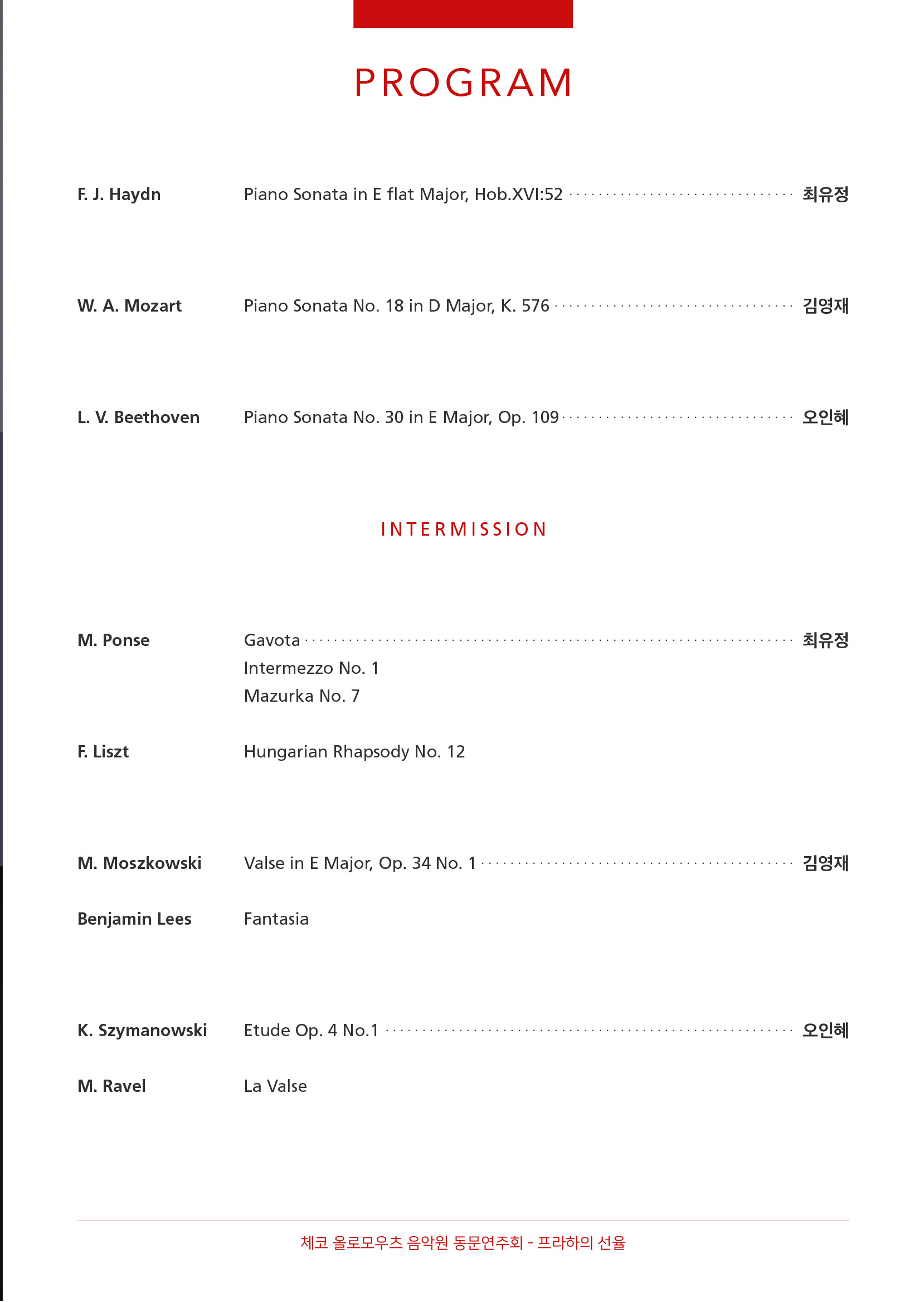 주최 체코 올로모우츠 음악원 동문회