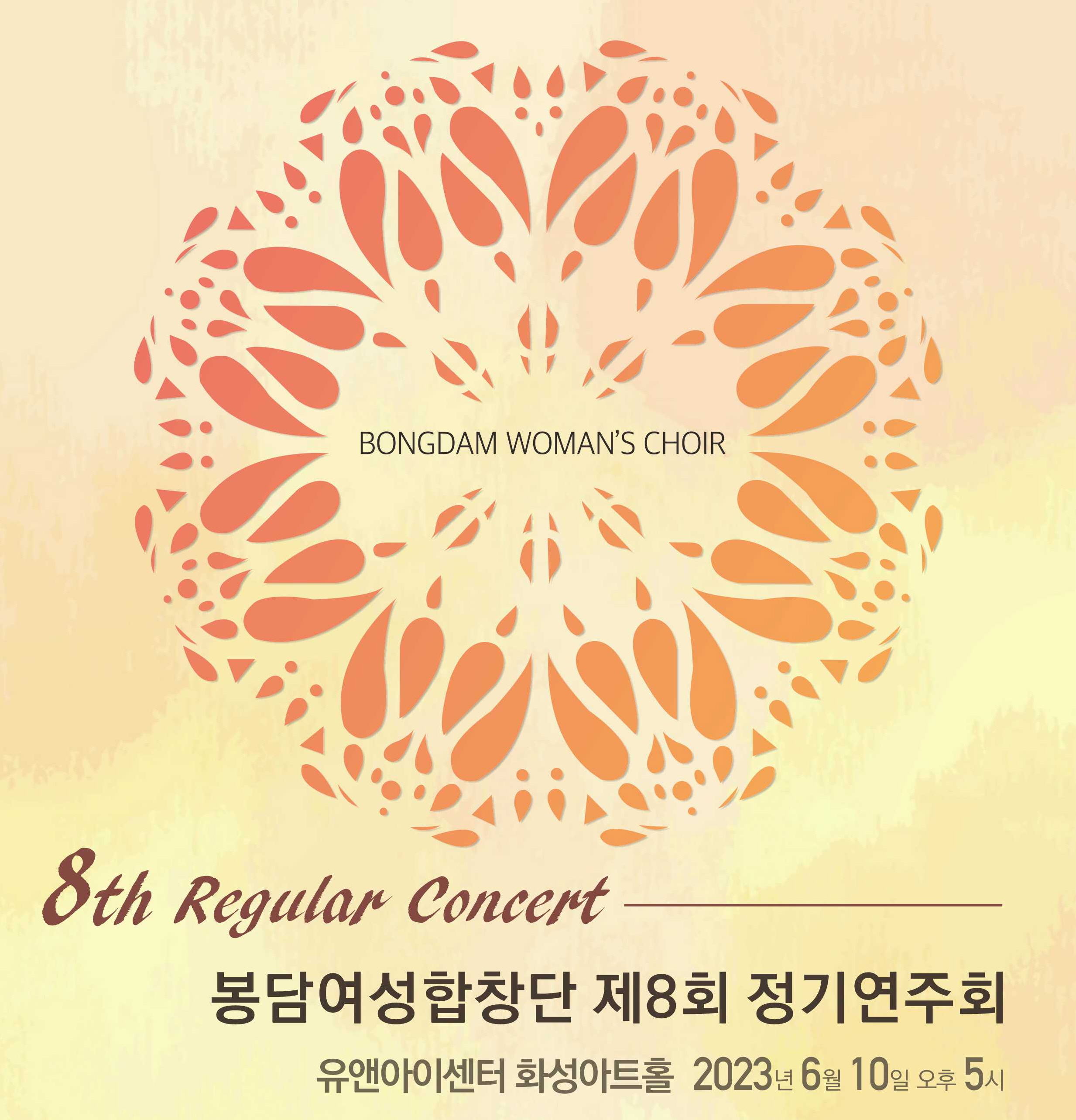 1. 봉담여성합창단 제8회 정기연주회,장소:유앤아이센터 화성아트홀,기간:2023년 6월 10일~2023년 6월 10일