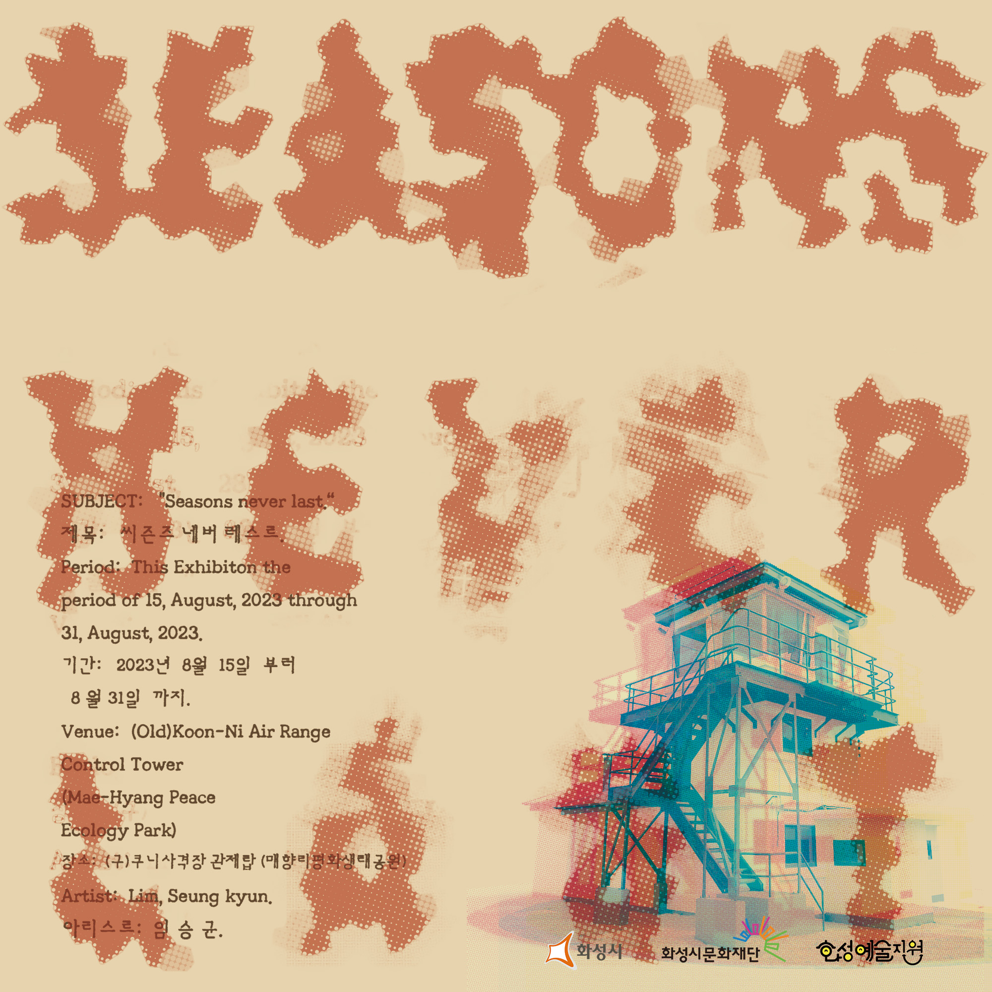 1. [화성예술지원] 임승균 <Seasons never last 展>,장소:,기간:2023년 8월 15일~2023년 8월 31일