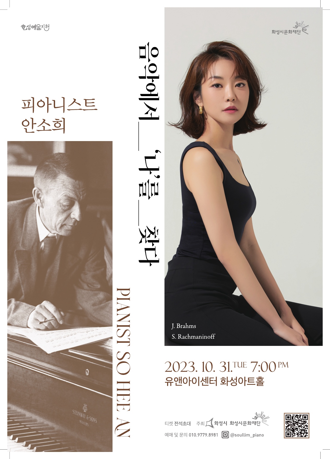 1. [화성예술지원] 피아니스트 안소희 <음악에서 나를 찾다>,장소:화성아트홀,기간:2023년 10월 31일~2023년 10월 31일