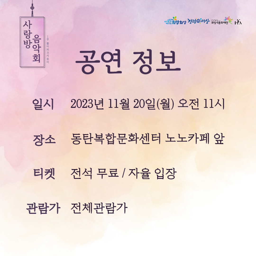 【공 연】[화성시 청년예술단] 사랑방 음악회