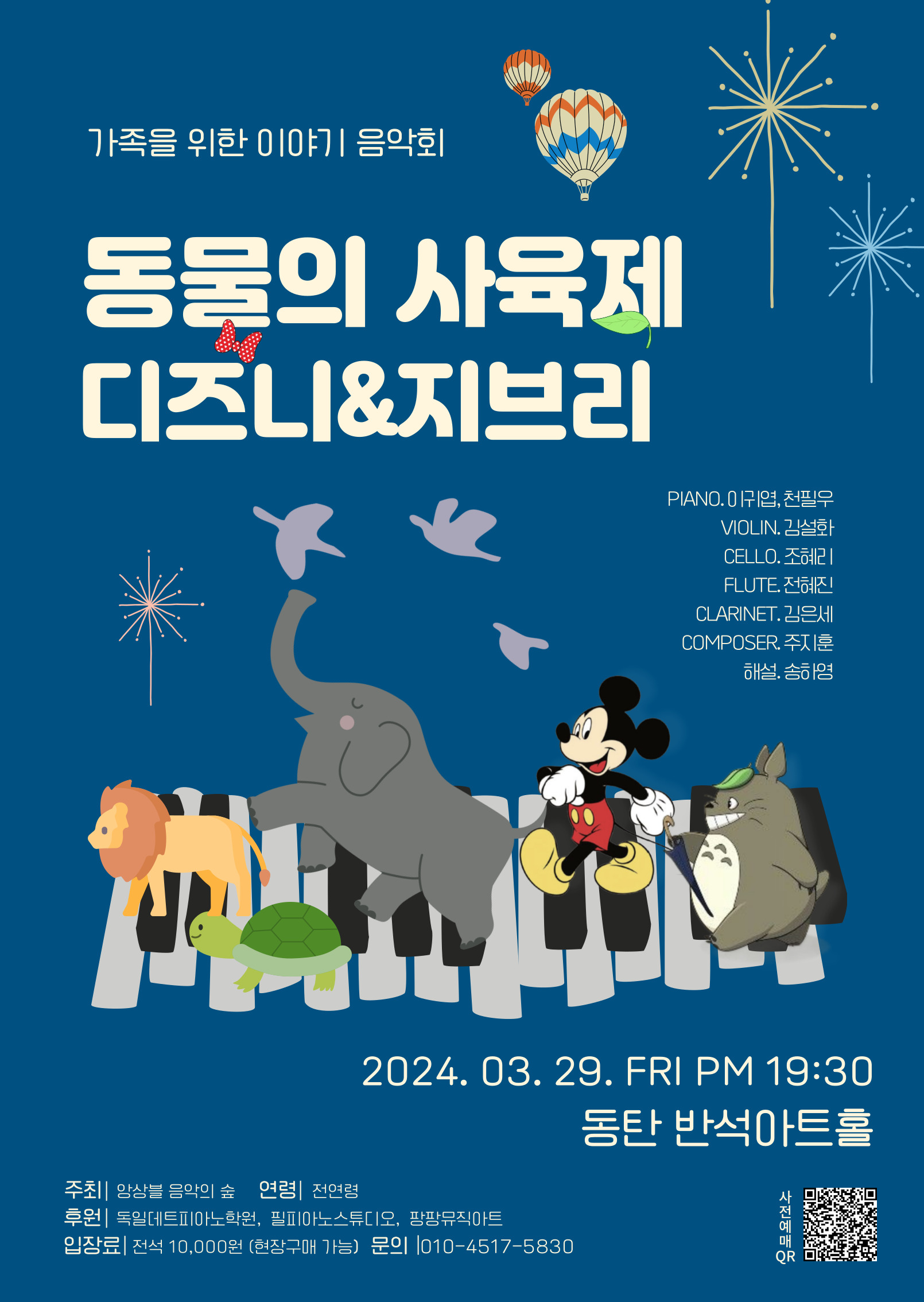 앙상블 음악의 숲에서 주최하는 가족을 위한 이야기 음악회 동물의 사육제 디즈니&지브리입니다.