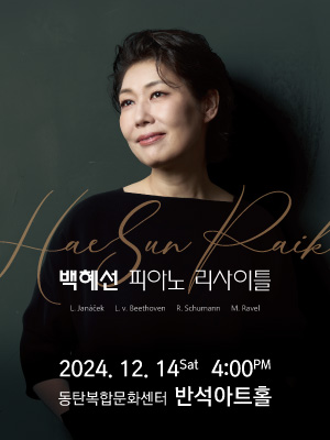 1. 백혜선 피아노 리사이틀,장소:,기간:2024년 12월 14일~2024년 12월 14일
