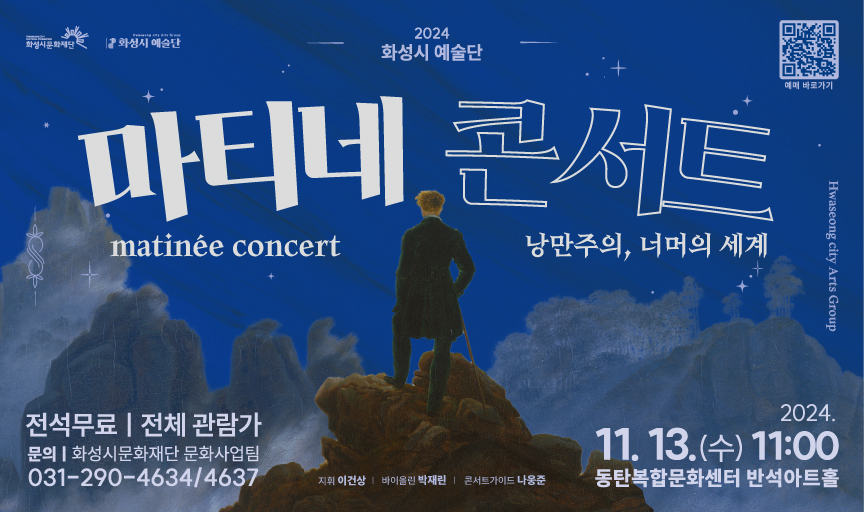 1. 2024 화성시 예술단 마티네 콘서트: 낭만주의, 너머의 세계,장소:,기간:2024년 11월 13일~2024년 11월 13일