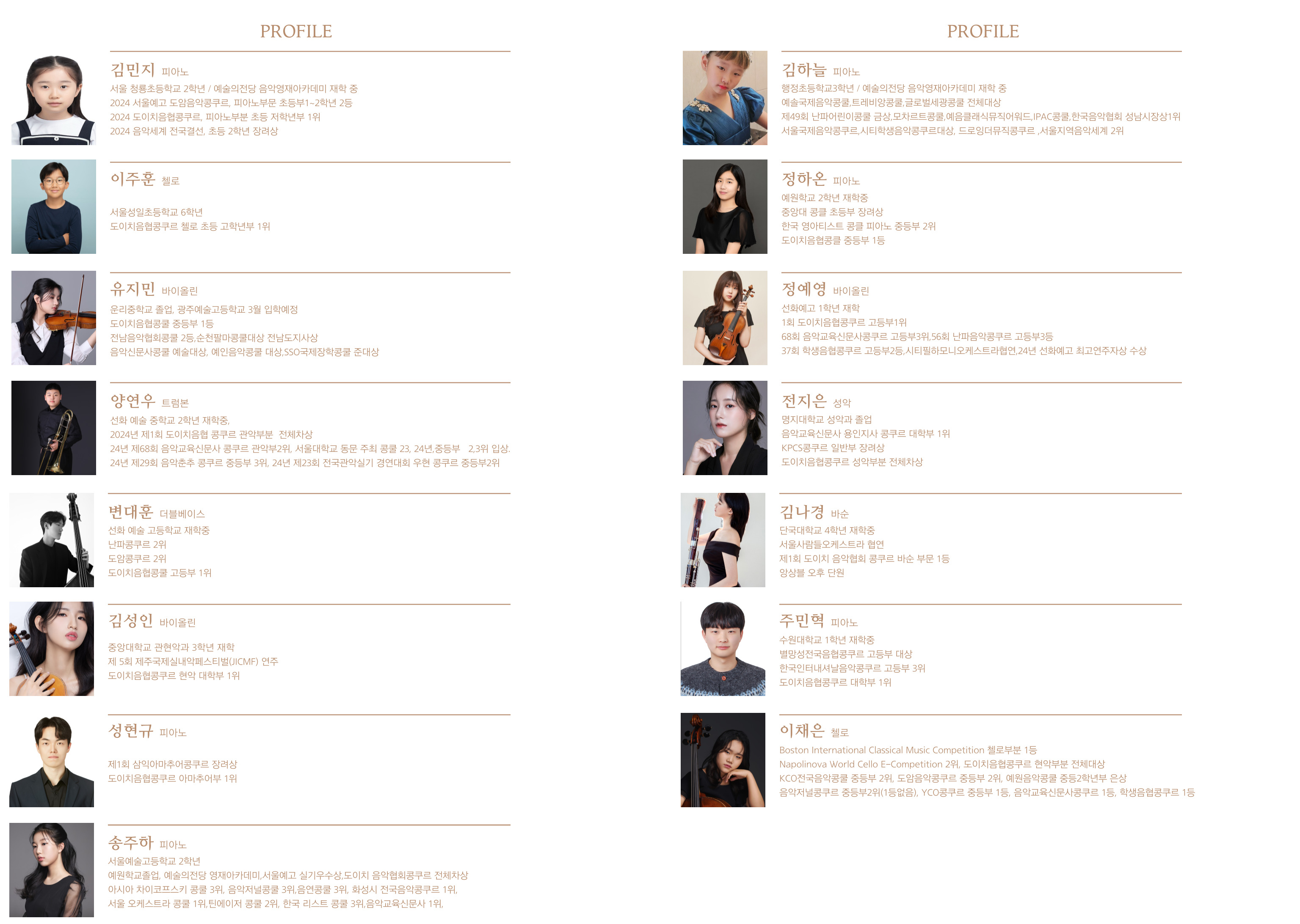 행정초등학교3학년/ 예술의전당 음악영재아카데미 재학 중 예술국제음악콩쿨, 트레비앙콩쿨, 글로벌세광콩쿨 전체대상