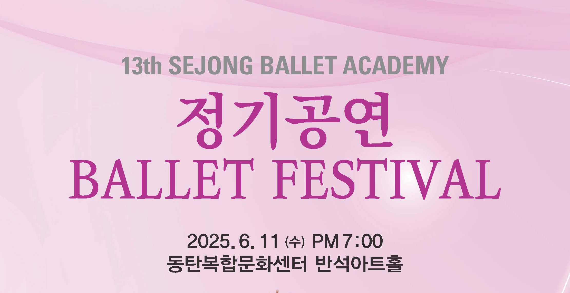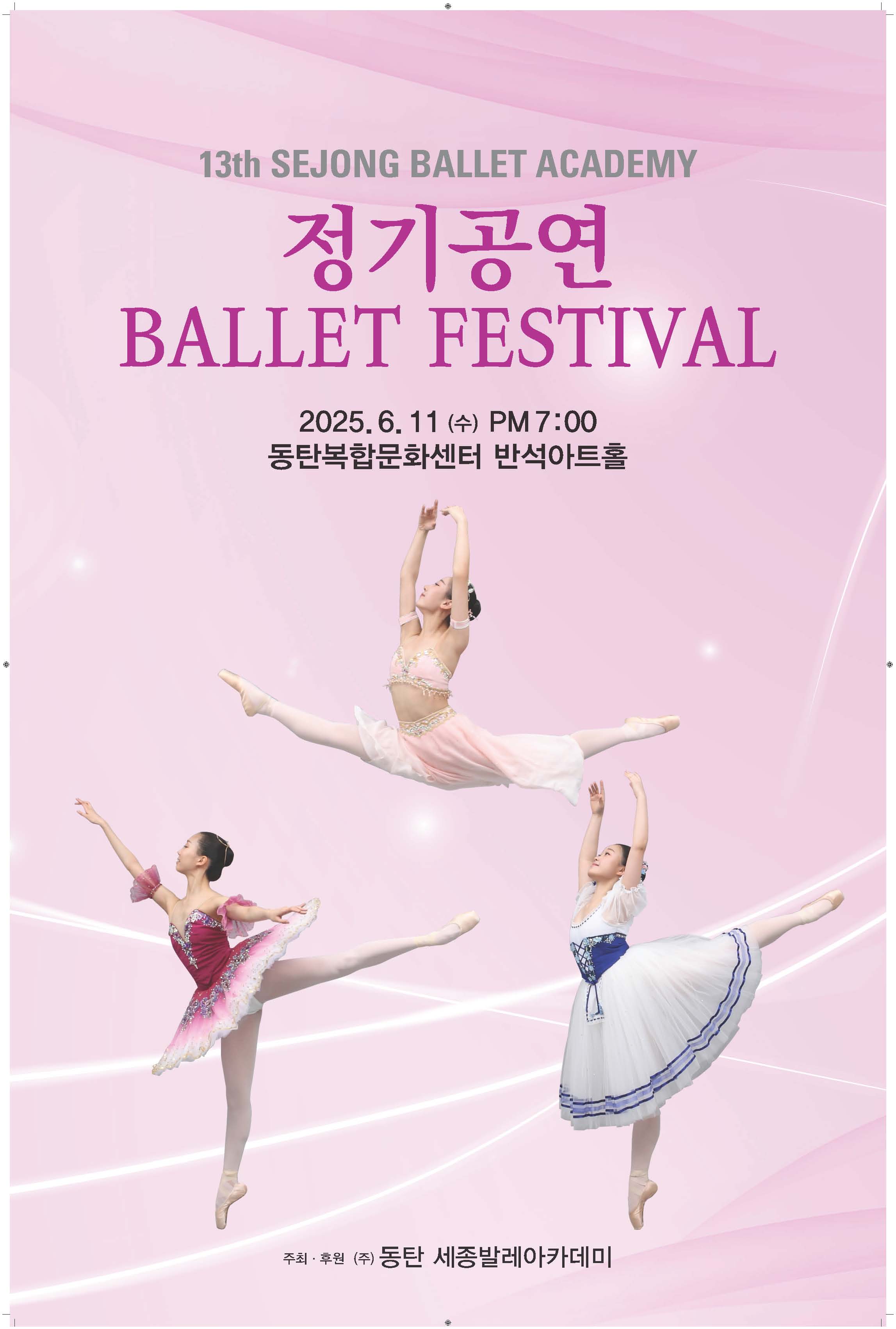13th Sejong Ballet Academy 정기공연 Ballet Festival 2025.6.11.(수) PM7:00 동탄복합문화센터 반석아트홀 주최후원 동탄 세종발레아카데미